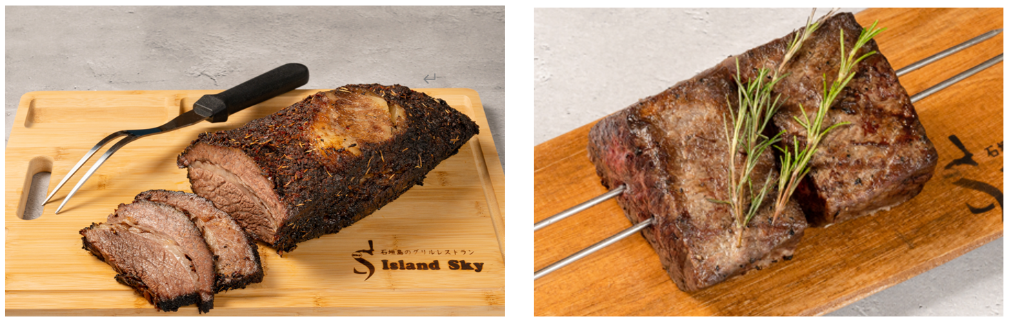 (左:人気№1 石垣牛ブリスケット、右:石垣牛シュラスコ)
