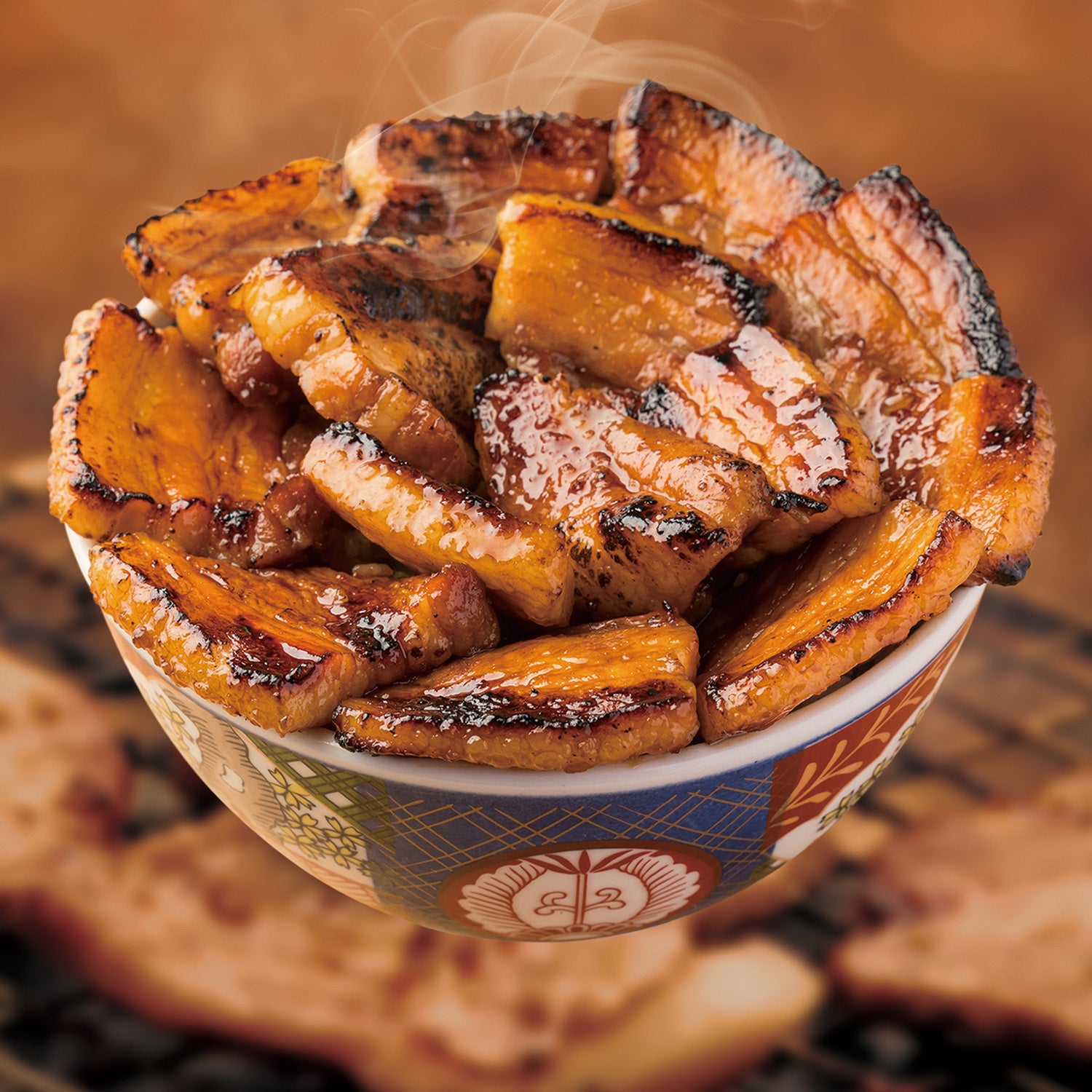 北海道帯広の名物「豚丼」を提供、ご注文を受けてから秘伝タレに漬け込んだお肉を1枚1枚丁寧に焼きあげ、旨味が凝縮された香ばしいお肉をご飯に豪快に盛り付け、とても贅沢な味わいに仕上げています。