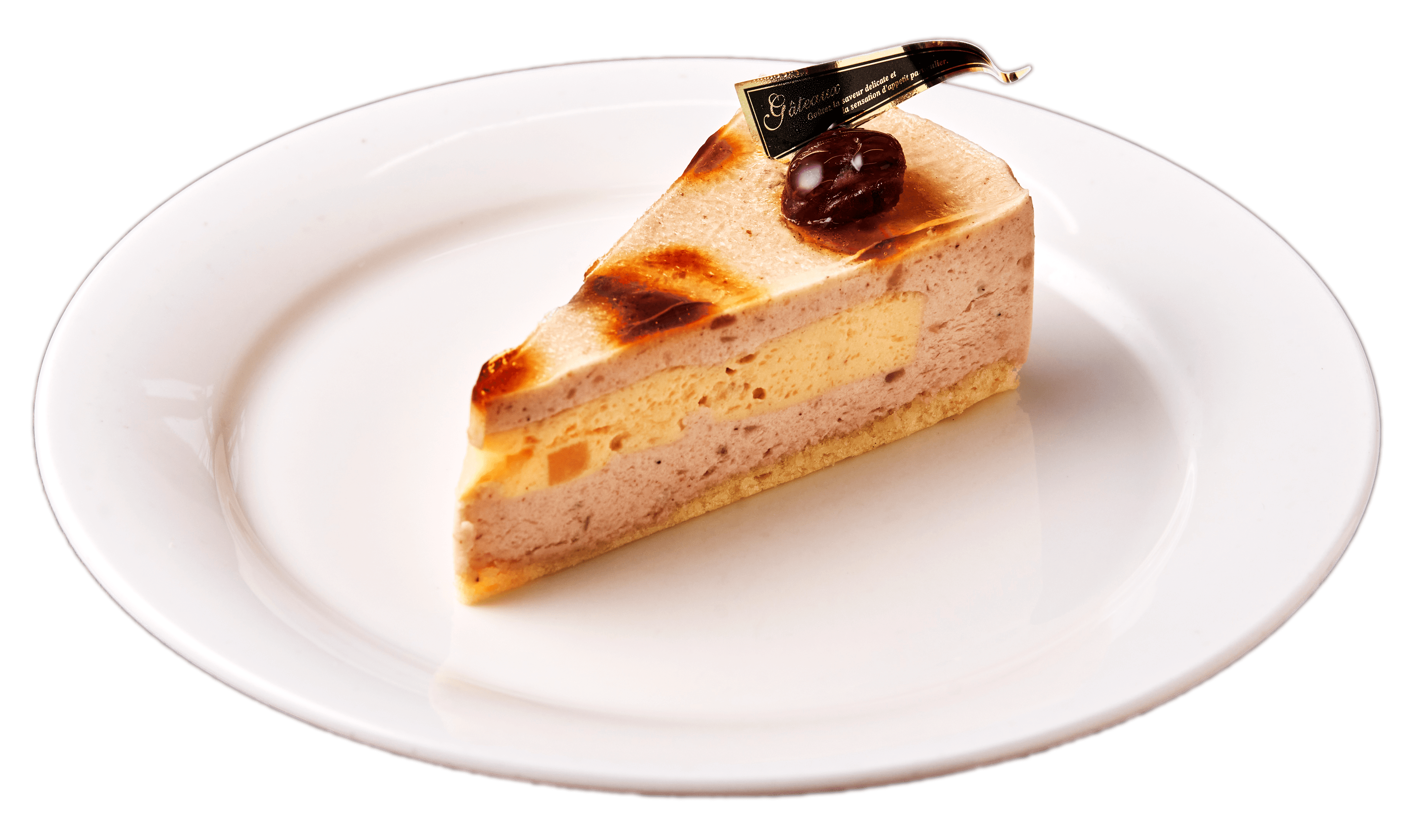 フランス・サバトンのマロンペーストと刻みマロンたっぷりのマロンムース、洋梨をふんだんに使ったポワールムースを合わせました。秋の味覚のハーモニーをお楽しみください。