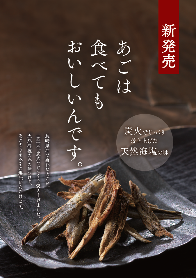 「そのまま食べる 長崎の焼きあご」は、10月9日~10月15日まで、全国の茅乃舎店舗で開催している「あご祭り」にて初お披露目いたします。