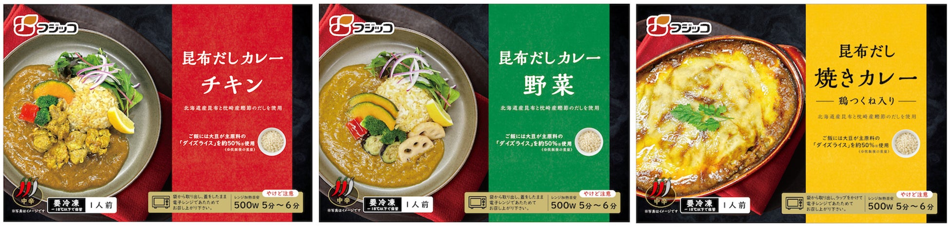 今回、冷凍自動販売機で販売を開始した「昆布だしカレー」は、生昆布のペーストを使用することで昆布そのもののうまみを感じることができる商品です。また、お米の半分にフジッコ製品である「ダイズライス」を使用し、より低糖質・高たんぱく質なカレーに仕上がっています。