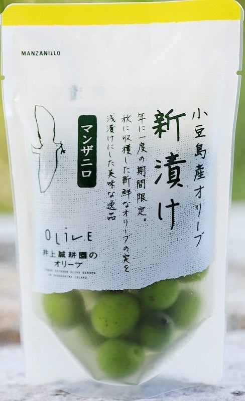 今年は厳しい暑さの中でも、恵みの雨が多く降ったことで生育も早く、実太りの良いハリのある果実が育ちました。新漬けオリーブは熟す前の約2ヵ月間、今だけしか味わえない季節限定の特産品です。