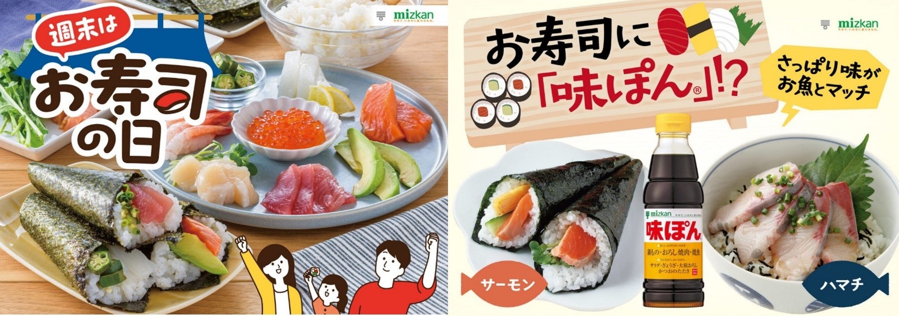株式会社Mizkan (本社:愛知県半田市、代表取締役社長兼CEO:吉永 智征、以下:ミツカン)は、中国・四国地方にて、「週末はお寿司の日」と題し、お寿司の美味しさや作る楽しさといった魅力を伝えていくために、「味ぽん」で食べるお寿司の提案をしてまいります。またそれに合わせ、中国・四国地方限定で、ジョイマンさんが出演するTVCMを10月7日(土)より放映しております。CM本編はミツカン公式YouTubeでも公開中です。