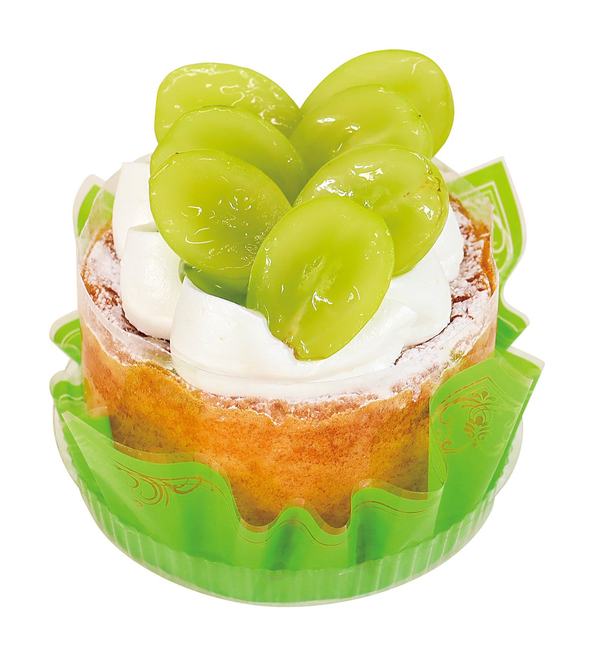 シフォン生地に軽いタイプのカスタードクリームをしのばせ、サワークリーム入りのホイップクリームを絞りました。旬のシャインマスカットをたっぷりと飾った、みずみずしいおいしさが楽しめる一品です。