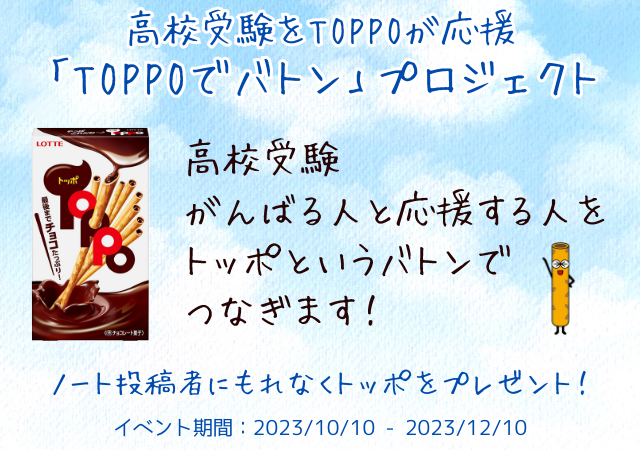 「高校受験を頑張る人・応援する人」をトッポというバトンがつなぎます!