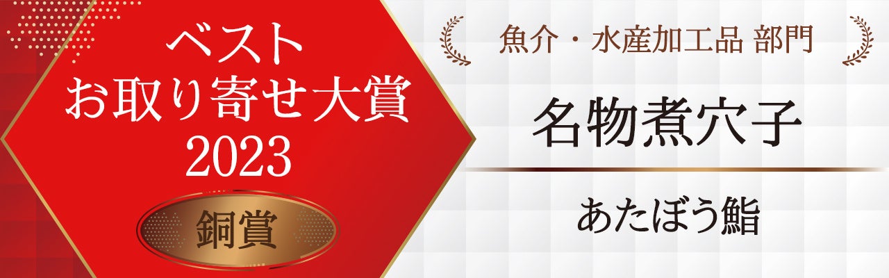 日本最大級のお取り寄せの情報サイト「おとりよせネット」にて、年間で最も優れたお取り寄せ商品を決定する「ベストお取り寄せ大賞2023」が2023年10月4日に発表され、『名物煮穴子』が「魚介・水産加工品部門」で銅賞を受賞しました。