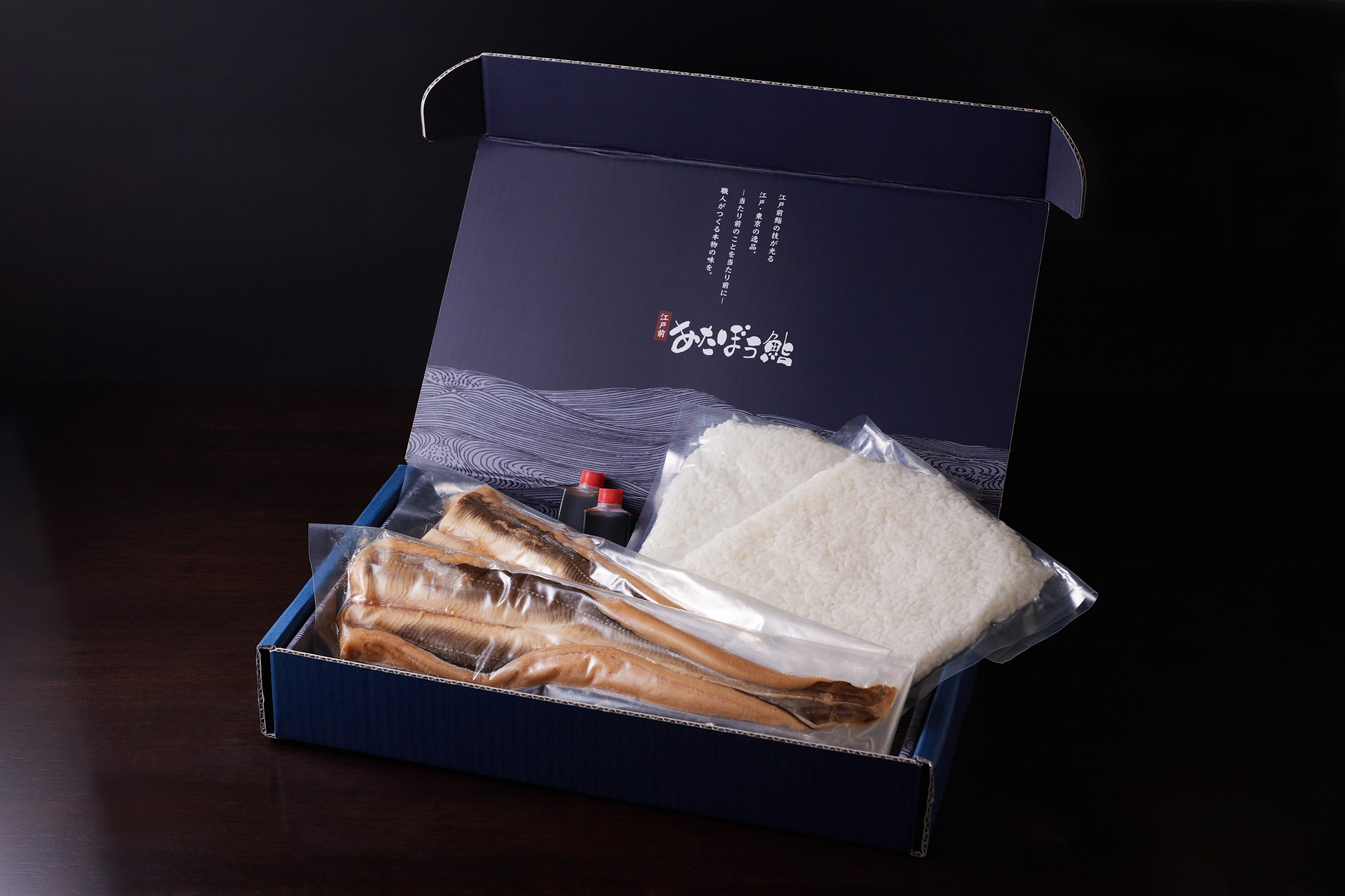 ・内容量:煮穴子(2尾)約200g/シャリ(酢飯)280g×2袋/穴子のツメダレ 30g×2