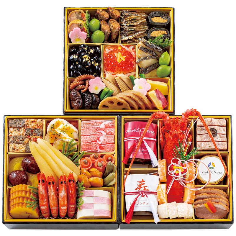 和と洋の華やかな共演。世界をもてなすホテルの心意気が光る三段重です。