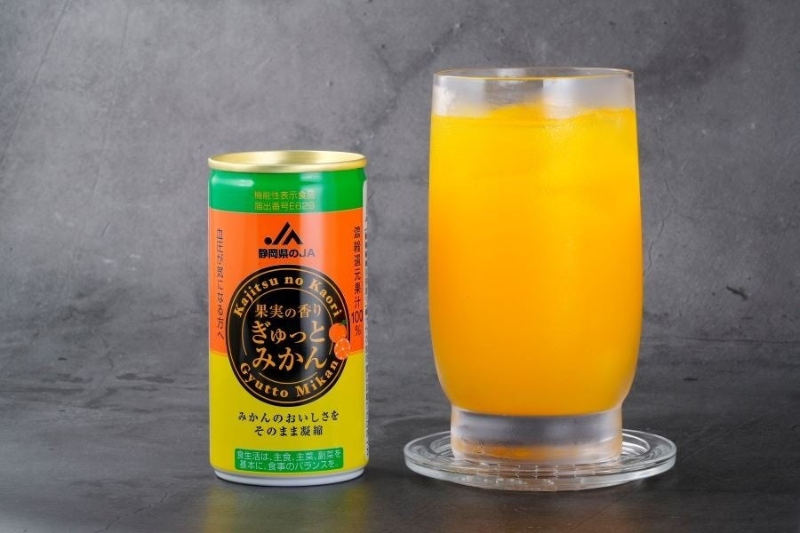 静岡県内産の温州みかんを100%使用し、1缶にみかん5個分の果汁を使用。無加糖で温州みかん本来の香りと甘さが際立ちます。みかんのうま味をぎゅっと閉じ込めた贅沢な味わいをぜひご堪能ください。