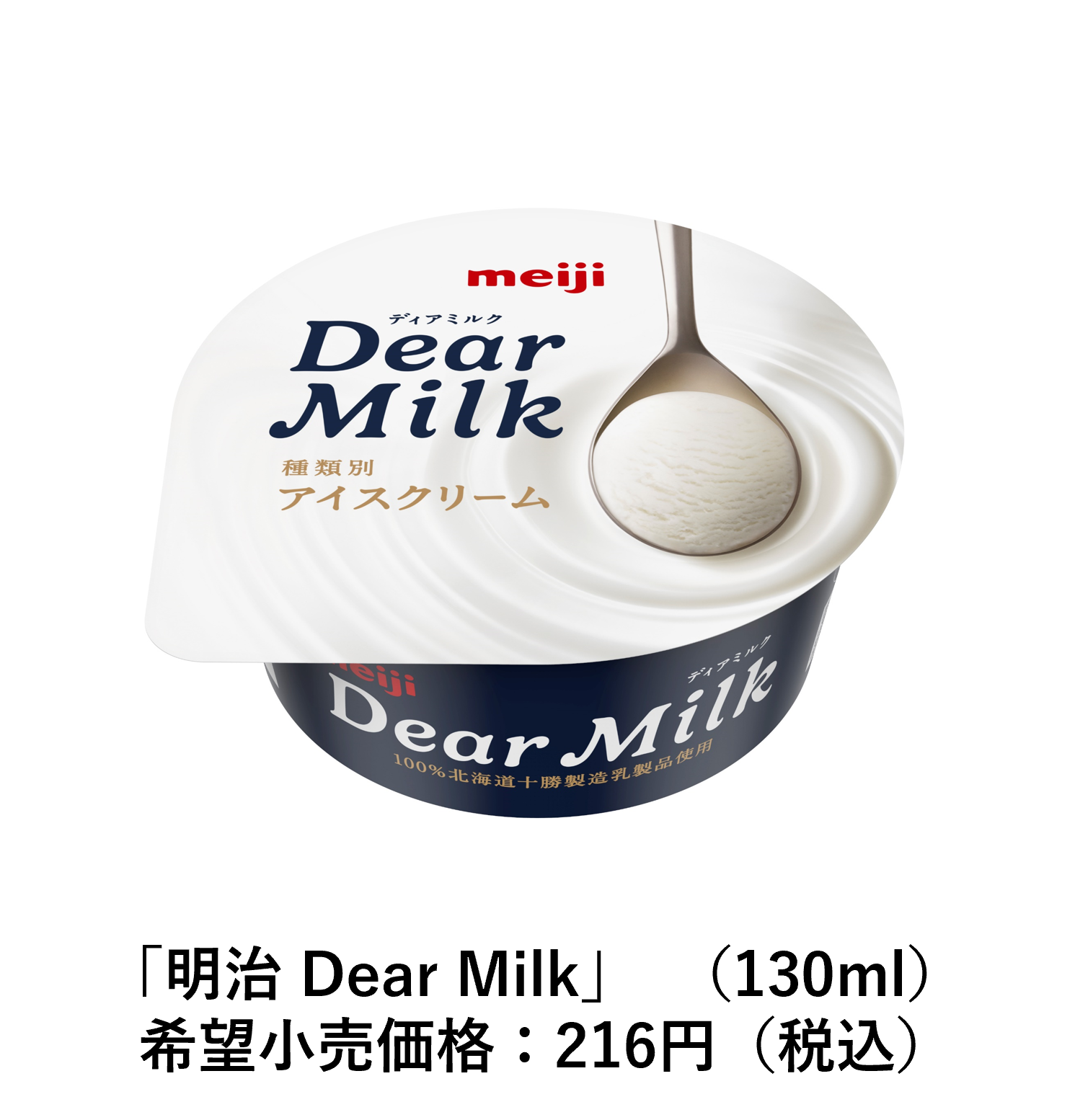 明治は“ミルクの味わいを最大限引き出したアイスクリーム”を目指した、国産乳製品(北海道十勝製造)100%使用の新しいミルクアイス「明治 Dear Milk」を、2023年3月27日より関東エリアで発売し、9月下旬から中部・関西エリアでも販売します。なお、北海道河西郡芽室町のふるさと納税返礼品としても取り扱われております。