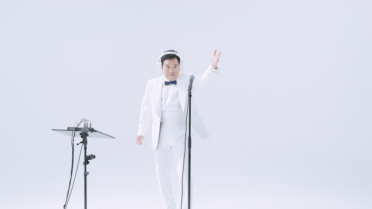 話題の一発撮り風動画のように、マイクスタンドと機材のみが置かれた真っ白な空間。自己紹介とともに「お願いします」とお辞儀をして勢いよくマイクスタンドに頭をぶつけるところから、思わずクスッと笑ってしまうようなグッチ裕三さんの世界観に引き込まれていきます。一発撮りの緊張感と神妙なグッチ裕三さんの面持ちから今か今かと歌い始めを期待しながらも、「マイクスタンドいらないんだよなぁ」「髪の毛、つぶれちゃったな」と、得意の「すかし」で裏切られること3連続。満を持して登場する美声の「Only乳」と、動画の最後を締めくくる銀吹雪、完璧なターンには圧巻です。