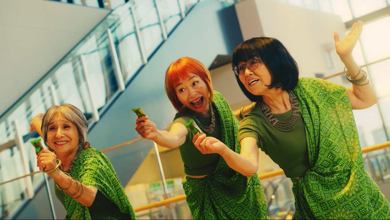 「茎わかめ×インド映画×おばあちゃん」の異色のコラボレーションが織りなす新CMには、平均年齢68歳のおばあちゃんダンサーズ、BACK STREET SAMBERSも出演。