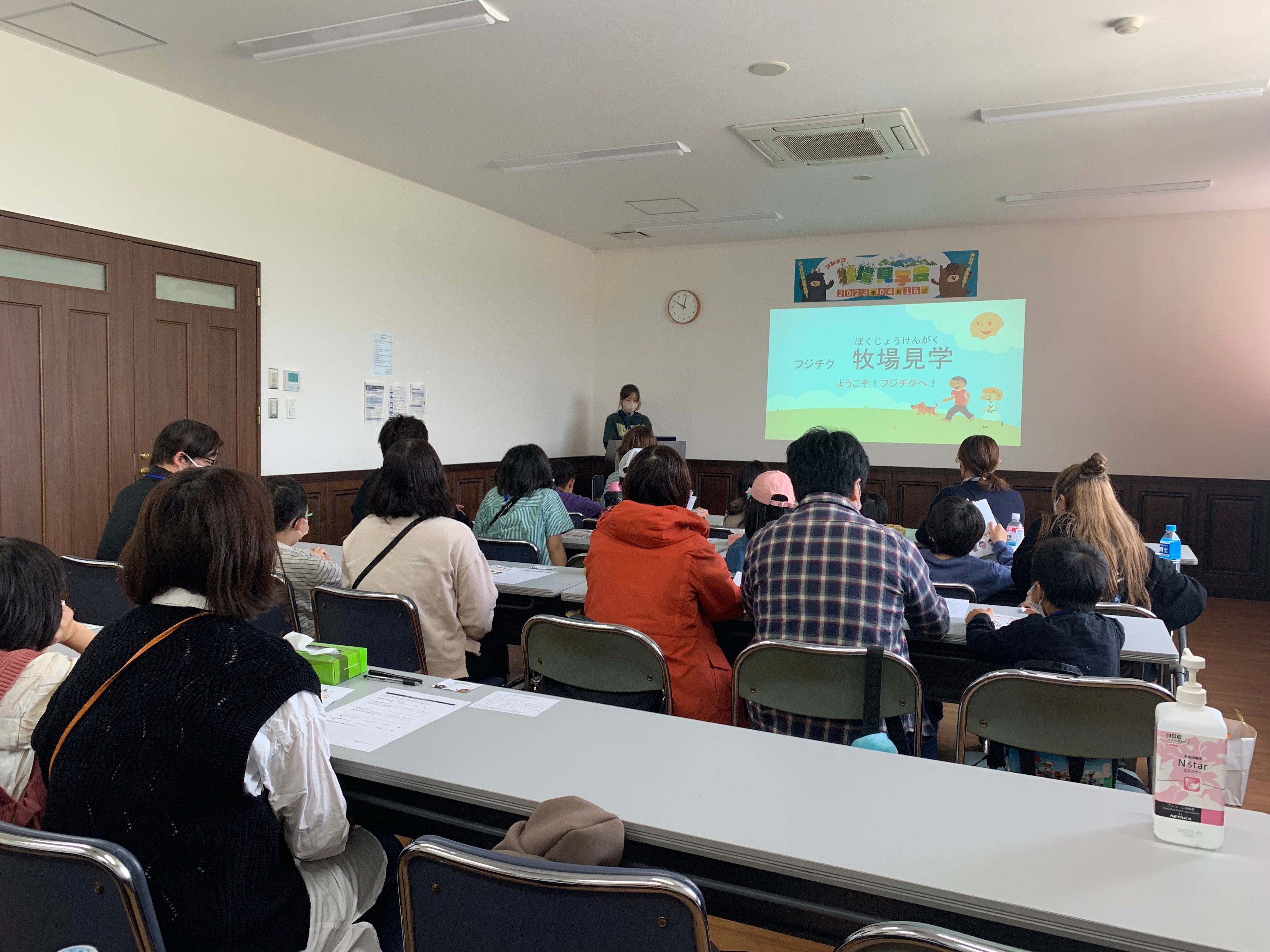 普段食べているお肉がどのように育てられているのか、牛や馬がどのように生活しているのかをクイズや動画を交えながら見学会を行いました。