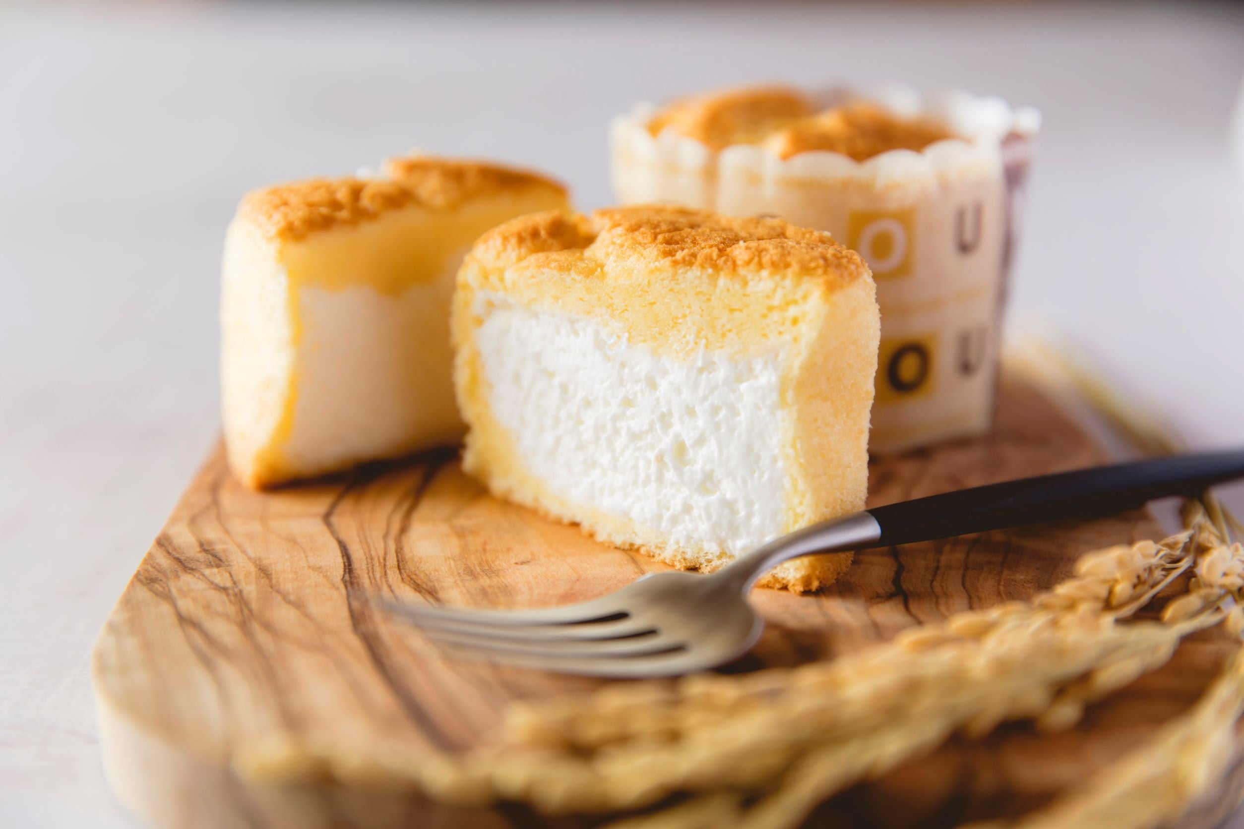 グルテンフリーシリーズ「come×come(コメトコメ)*」の商品。こめ油と米粉で作った小麦粉不使用のシフォンケーキ。しっとりふわふわもちもちのシフォン生地の食感に、たっぷりのホイップクリームが合わさり、口に入れた瞬間、米粉と卵の風味がやさしく広がります。食べだしたら止まらないおいしさに仕上がっています。