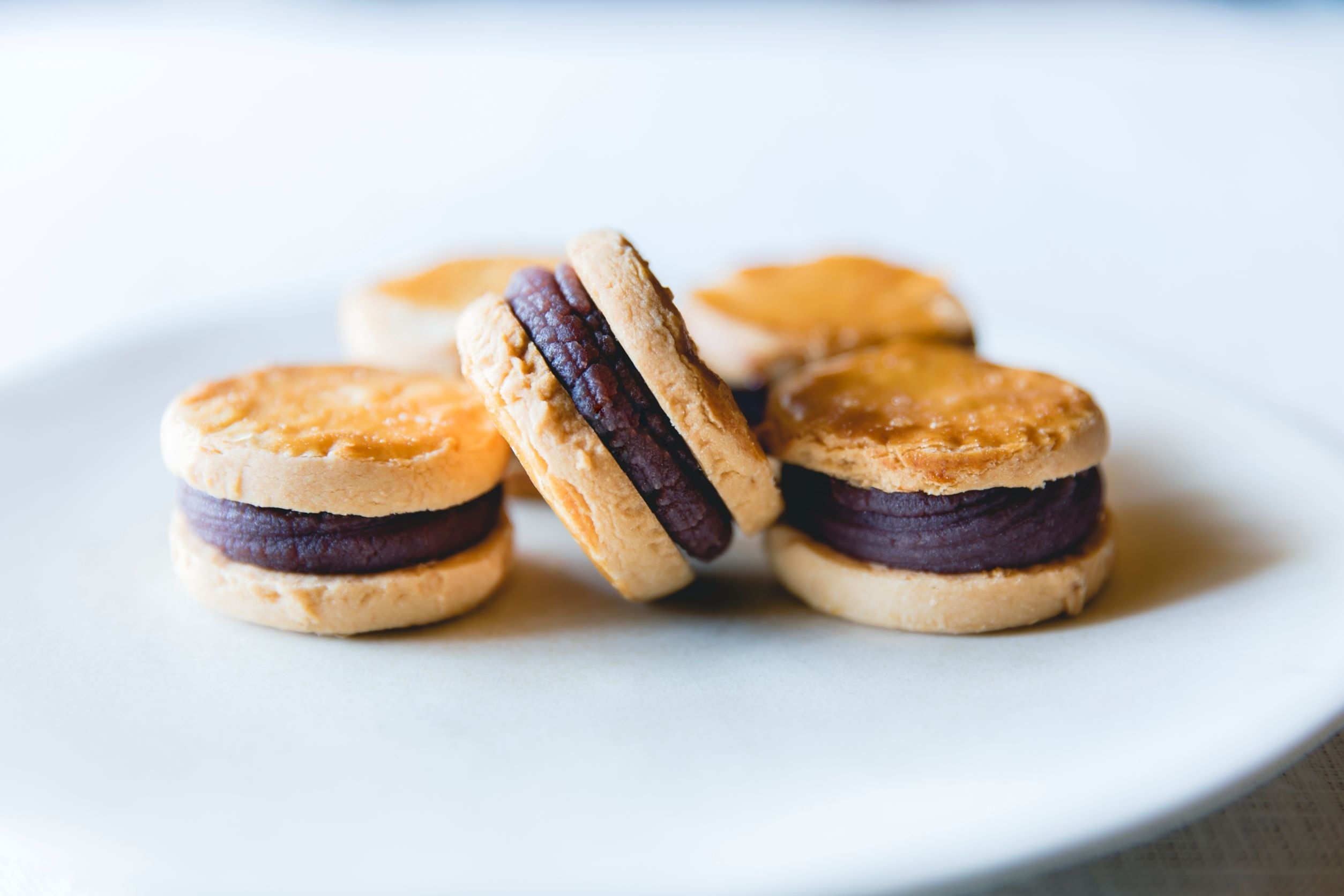 グルテンフリーシリーズ「come×come(コメトコメ)*」の商品。和歌山県にある、日本でもっとも歴史のあるあんこ屋「きたかわ商店」のこしあんを使っており、こめ油と米粉が入ったクッキーでサンドしました。こしあんのなめらかさとクッキーのサクサク食感が同時に楽しめます。和素材同士なので味の相性も抜群。