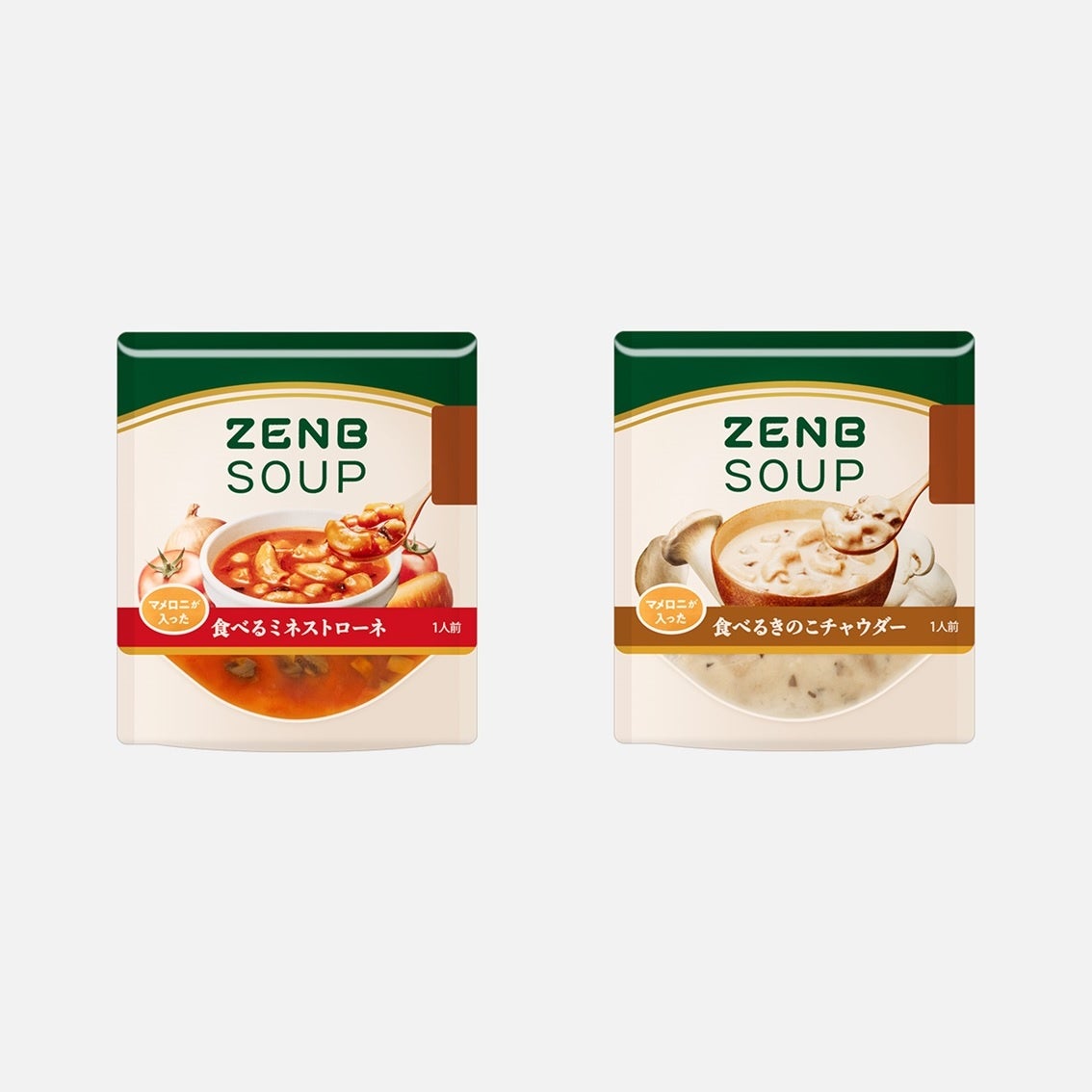 ZENBは、植物を可能な限りまるごと使った食で、おいしくてカラダにいい、人と社会と地球の健康に貢献する、未来に向けたウェルビーイングな食生活を提案するブランドです。野菜や豆、穀物といった植物のおいしさと栄養を、可能な限りぜんぶ閉じ込めました。動物性原料や添加物に頼らない味づくりで、素材そのもののおいしさを活かしています。小麦や米よりもヘルシーで地球にもやさしい黄えんどう豆を使った「ZENBヌードル」「ZENBマメロニ」「ZENBミール」「ZENBチップス」や、普段食べずに捨ててしまう芯や皮まで、まるごと野菜を使った「ZENBペースト」「ZENBスティック」「ZENBカレー」「ZENBスープ」などを販売しています。