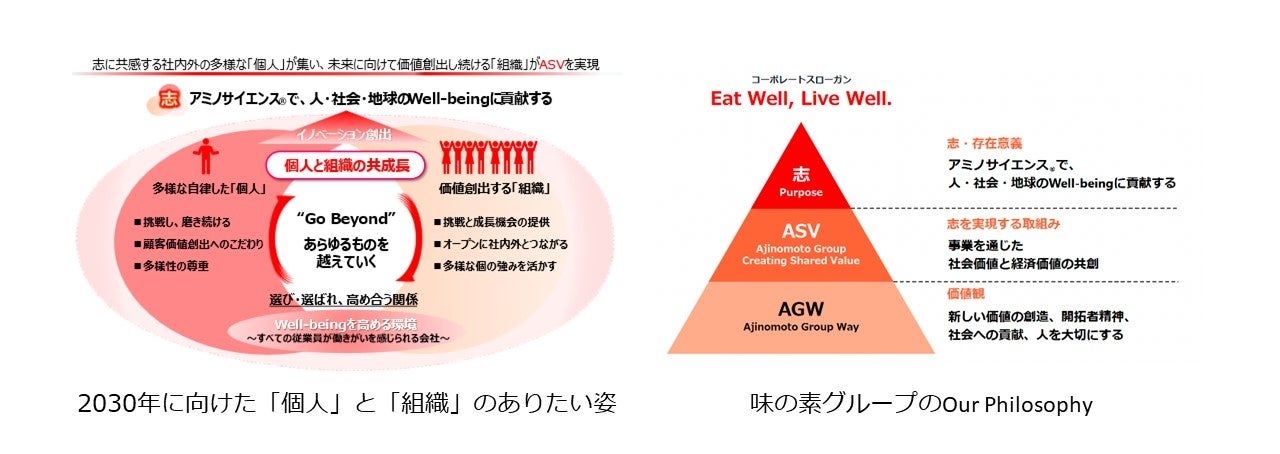 味の素グループはこれからも、従業員がいきいきと働ける環境を整備する施策を創出し続けることでASV※を実現し、世界中の多様なステークホルダーと共に成長しながら、「アミノサイエンス®で人・社会・地球のWell-beingに貢献する」という志(パーパス)に取組んでいきます。