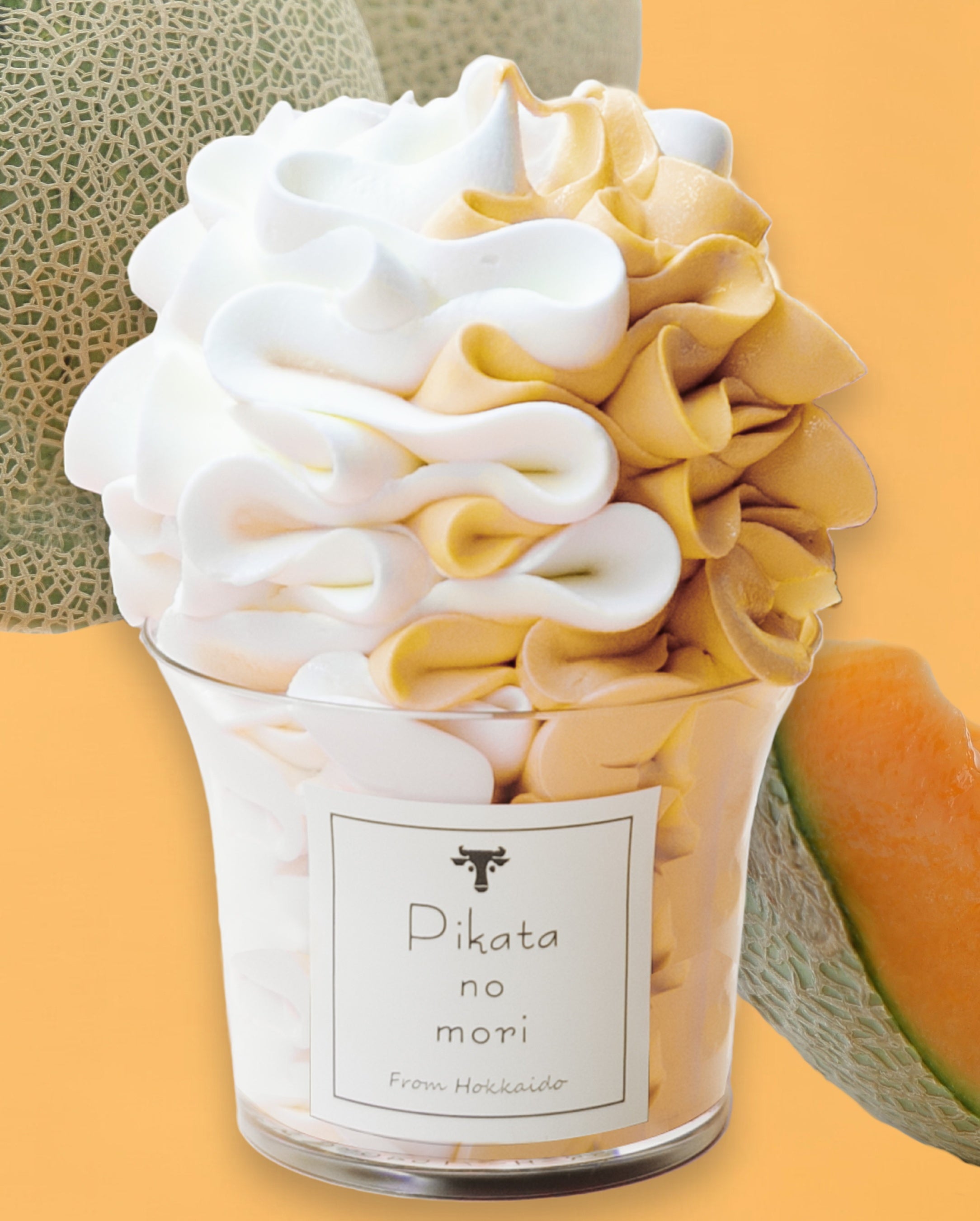 メロンの上に、たっぷりソフトクリームがのっています。