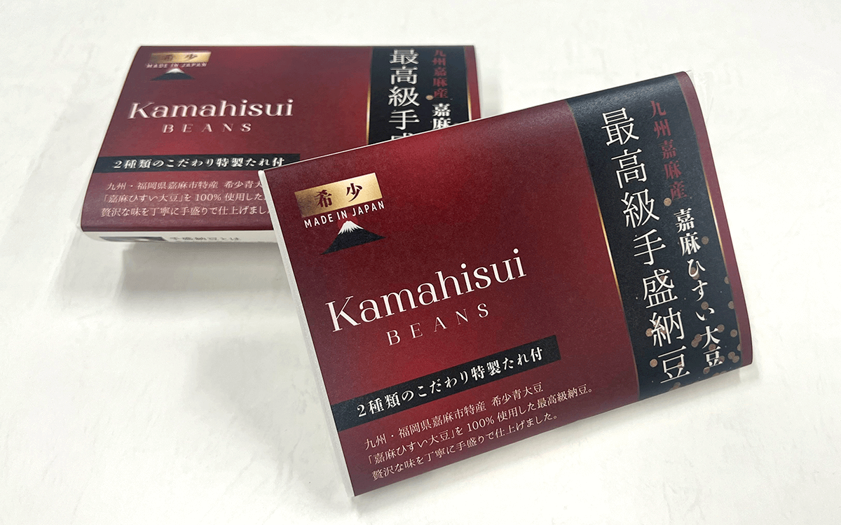 嘉麻ひすい大豆で作られた納豆です。嘉麻ひすい納豆は、2022年に初めて販売された新しい納豆で、近年、高級食材として注目されている嘉麻ひすい大豆を使用した納豆として、注目を集めています。