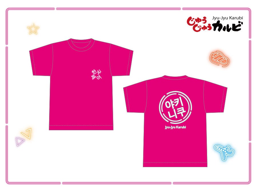 優しさや思いやりの気持ちをイメージさせるピンクのカラーのTシャツは、じゅうじゅうカルビで大事にしている「感謝」を表現しています。