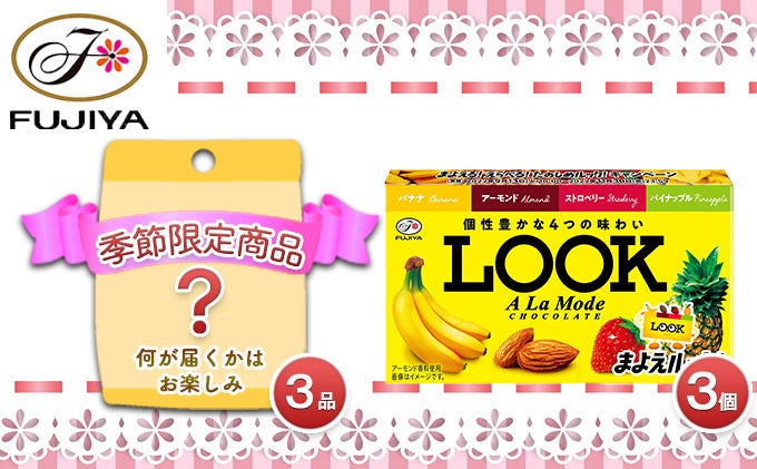 ◇セット内容:LOOKアラモード×3個、アーモンドチョコレート×2袋、ピーナッツチョコレート×2袋、ペコポコチョコレート×12個、ミルキーチョコレート×3個、季節限定品×3品