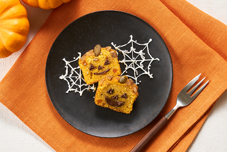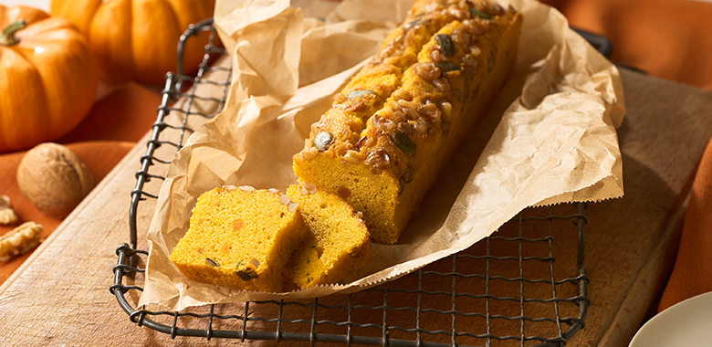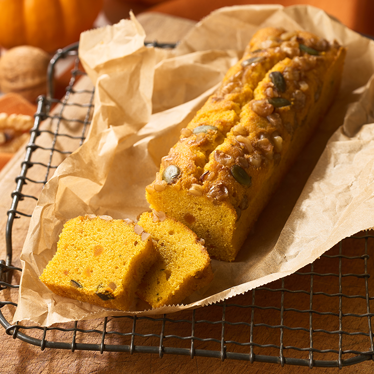ここもおいしく 皮ごとかぼちゃとはじかれくるみのパウンドケーキ