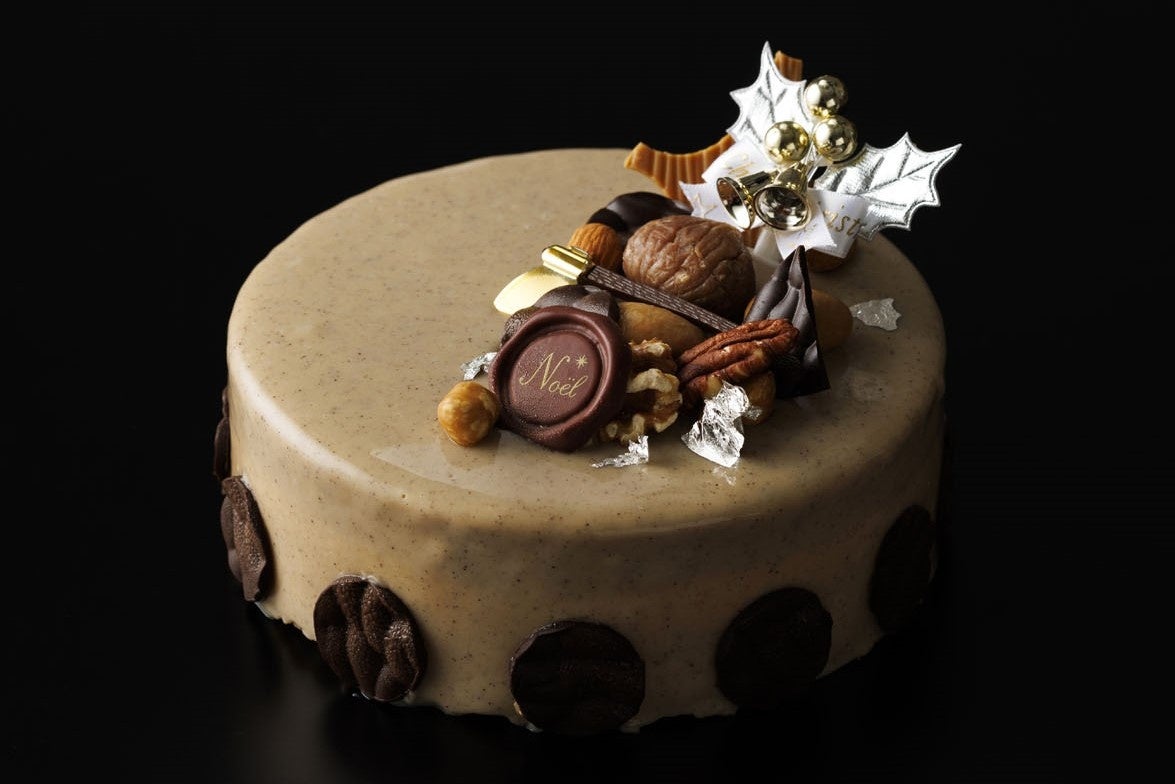 6 層ものレイヤードが美しい、上品な大人のクリスマスケーキ。紅茶のブリュレには、NY のオーガニックティーブランド セレンディピティーのマサラチャイを使用し、ほどよくスパイシーな余韻をご堪能いただけます。さらにチョコ&アールグレイのムースを重ねることで大人向けのテイストに仕上げており、シャンパーニュやブランデーとのマリアージュもお薦めです。