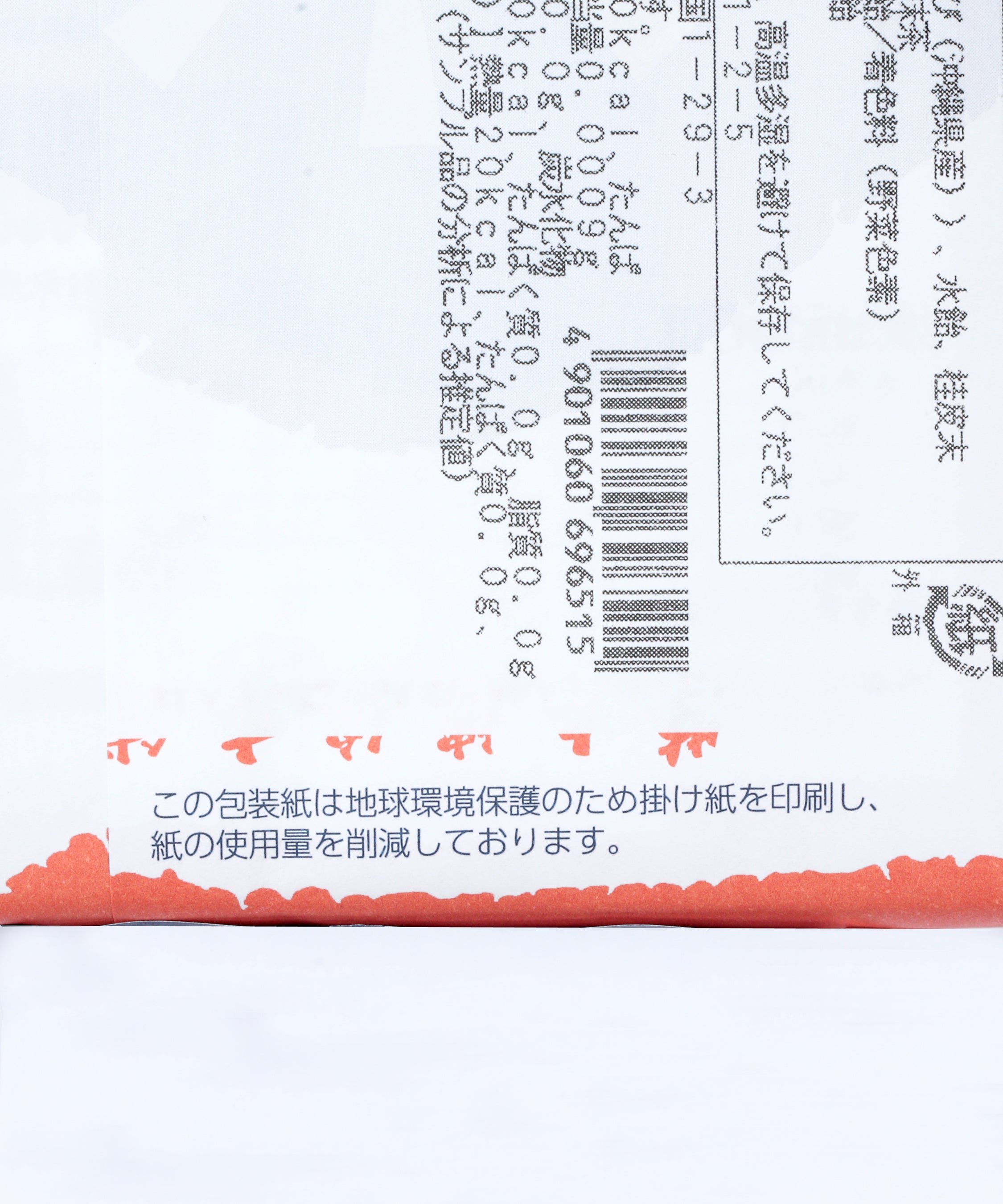 商品の底面には「この包装紙は地球環境保護のため掛け紙を印刷し、紙の使用量を削減しております」の文言入りです。