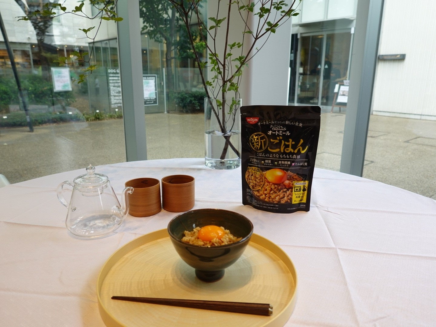 そして、「従来の“米化”を超えた“圧倒的米化”を実現したおいしいオートミール 新ごはんの、おすすめアレンジレシピは『卵かけごはん』である」とお召しあがり方についても紹介をしました。