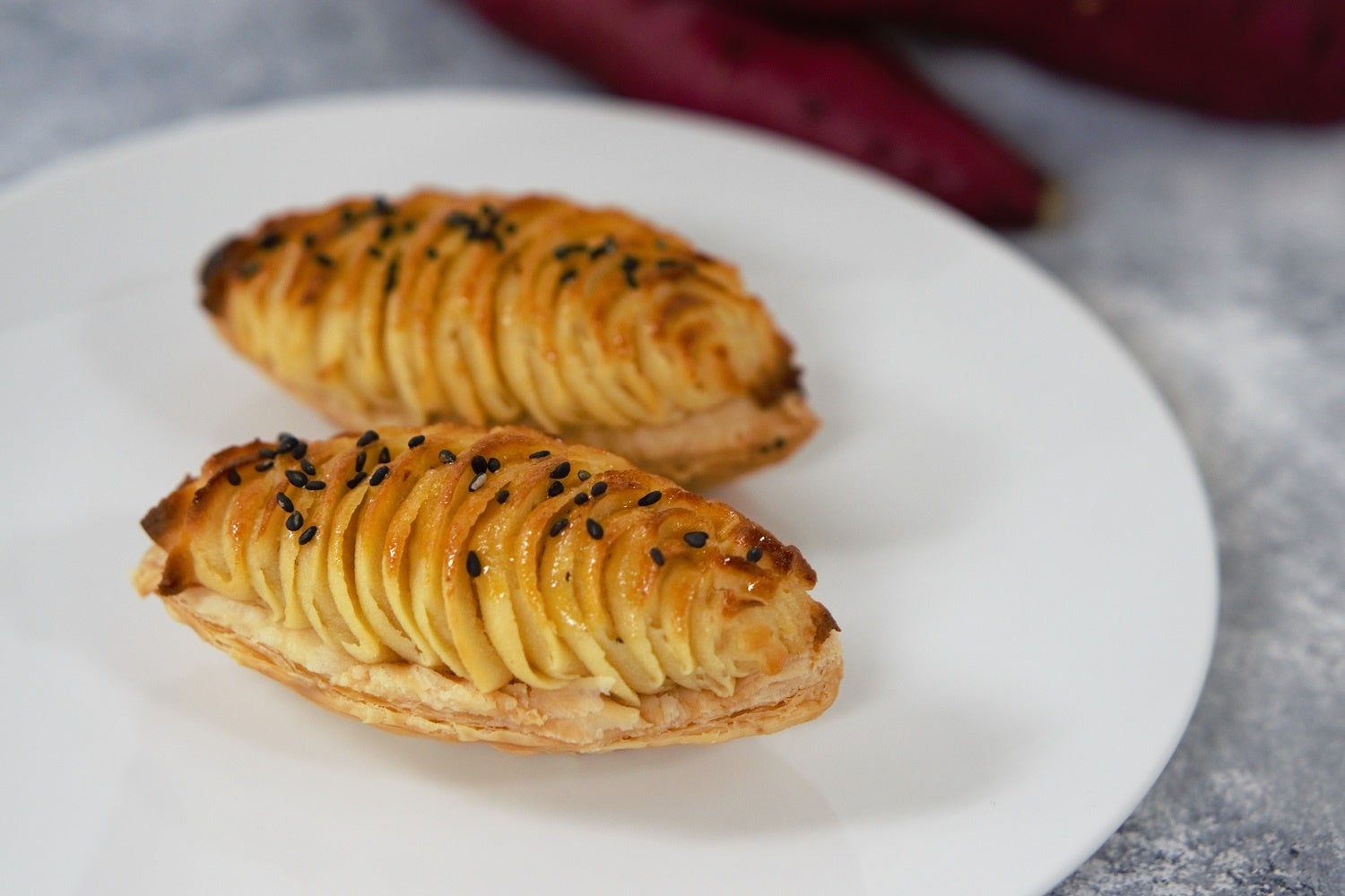 きめ細かな粉質と上品な甘さが特徴の五郎島金時をたっぷりと使い、上質なバターや生クリームと一緒にスイートポテトの餡に仕立て、サックサクのパイ生地にたっぷりと絞り出しました。