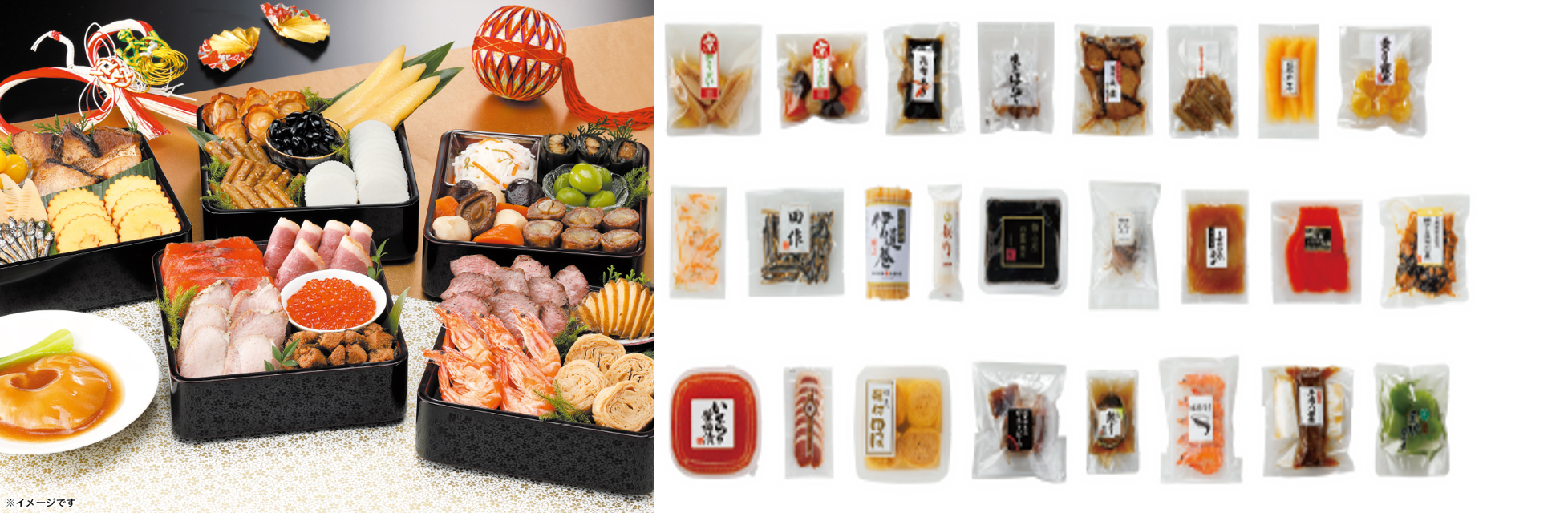 素材にこだわる食品メーカーに作っていただいているため、一品一品、すべてが主役です。「一年の始まりに、一番美味しい状態でお召し上がりいただきたい」というバイヤーの思いが込められています。