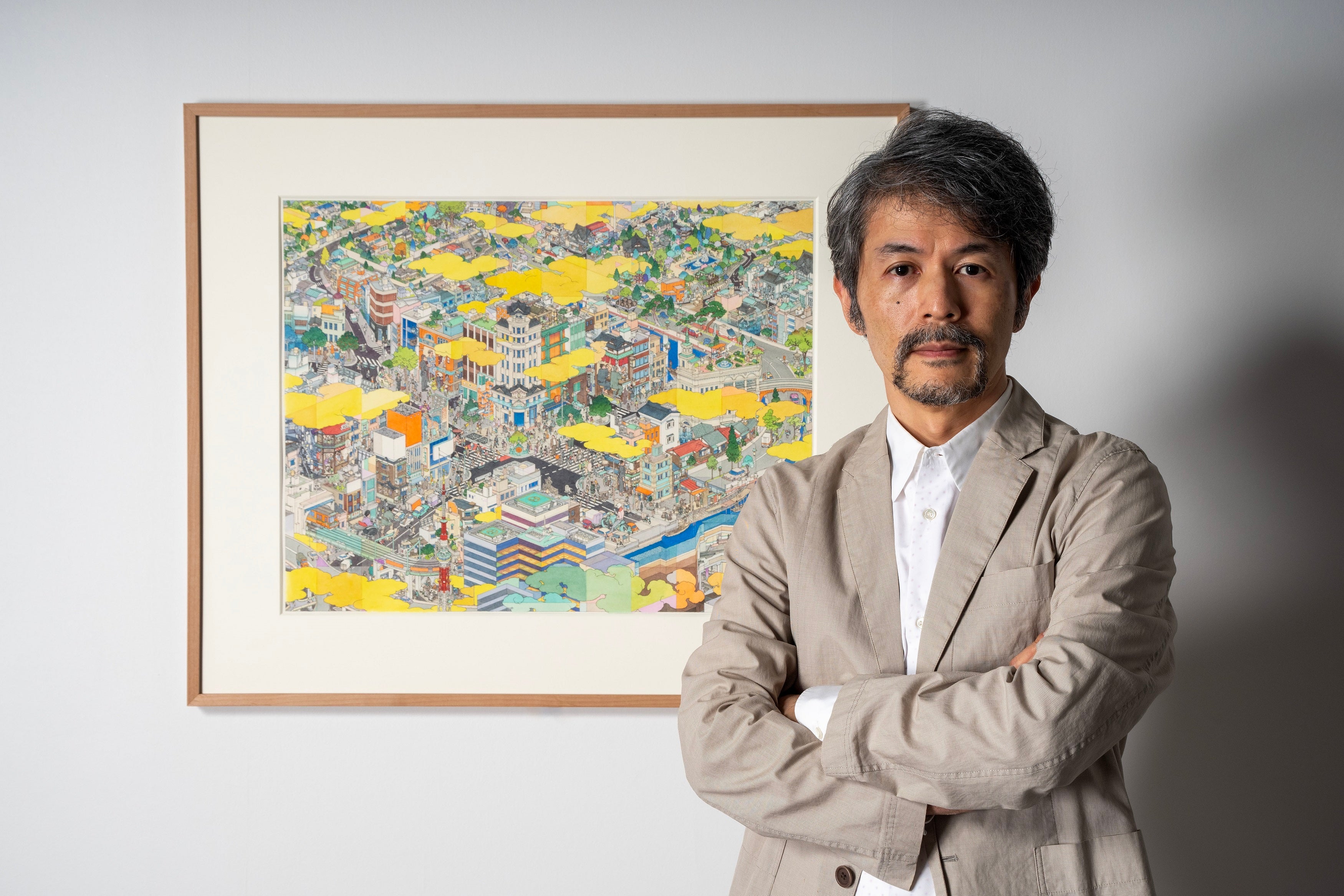 1969年東京生まれ。群馬県で育ち、1996年東京藝術大学大学院美術研究科油画専攻修了。都市や戦場の俯瞰図を描くことで知られ、伝統的な日本スタイルの油絵技法に加え、彫刻、日本の芸術形態である漫画、インスタレーションアートなど様々なメディアを駆使します。山口氏の幅広い活動は、長年にわたって日本中で高く評価されてきました。故郷・桐生で初の芸術大使に就任し、日本美術を独自に分析した著書『へんな日本美術史』は2013年に第12回小林秀雄賞を受賞。成田国際空港や東京メトロ日本橋駅などのパブリックアートを制作。新聞連載や小説の挿絵、表紙絵、テレビ番組のクレジットなど多数制作。TOKYO 2020パラリンピックの公式アートポスターも制作。国際的にも作品を発表しており、主な個展に「TOKIORE(I)MIX」(メゾンエルメス、ルフォーラム、東京)、山口晃: 「Stepping Back to Seek the Underneath」(水戸芸術館現代美術ギャラリー)、「Resonating Surfaces」(大和日英基金ジャパンハウス、ロンドン)など。