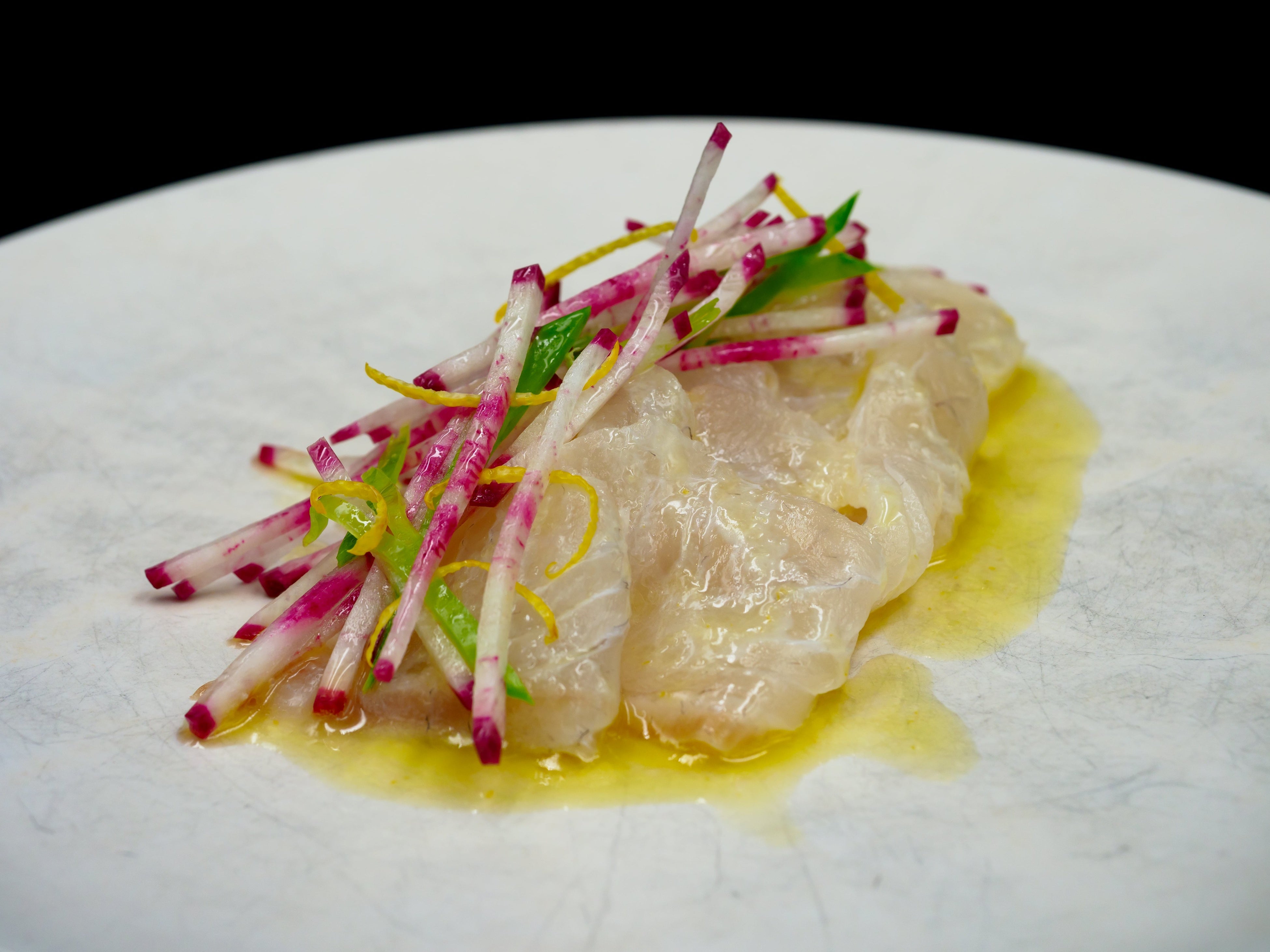 黄柚子の爽やかな香りと酸味が、淡白ながらも、ほのかな甘みを感じる真鯛の味わいをより引き立てます。