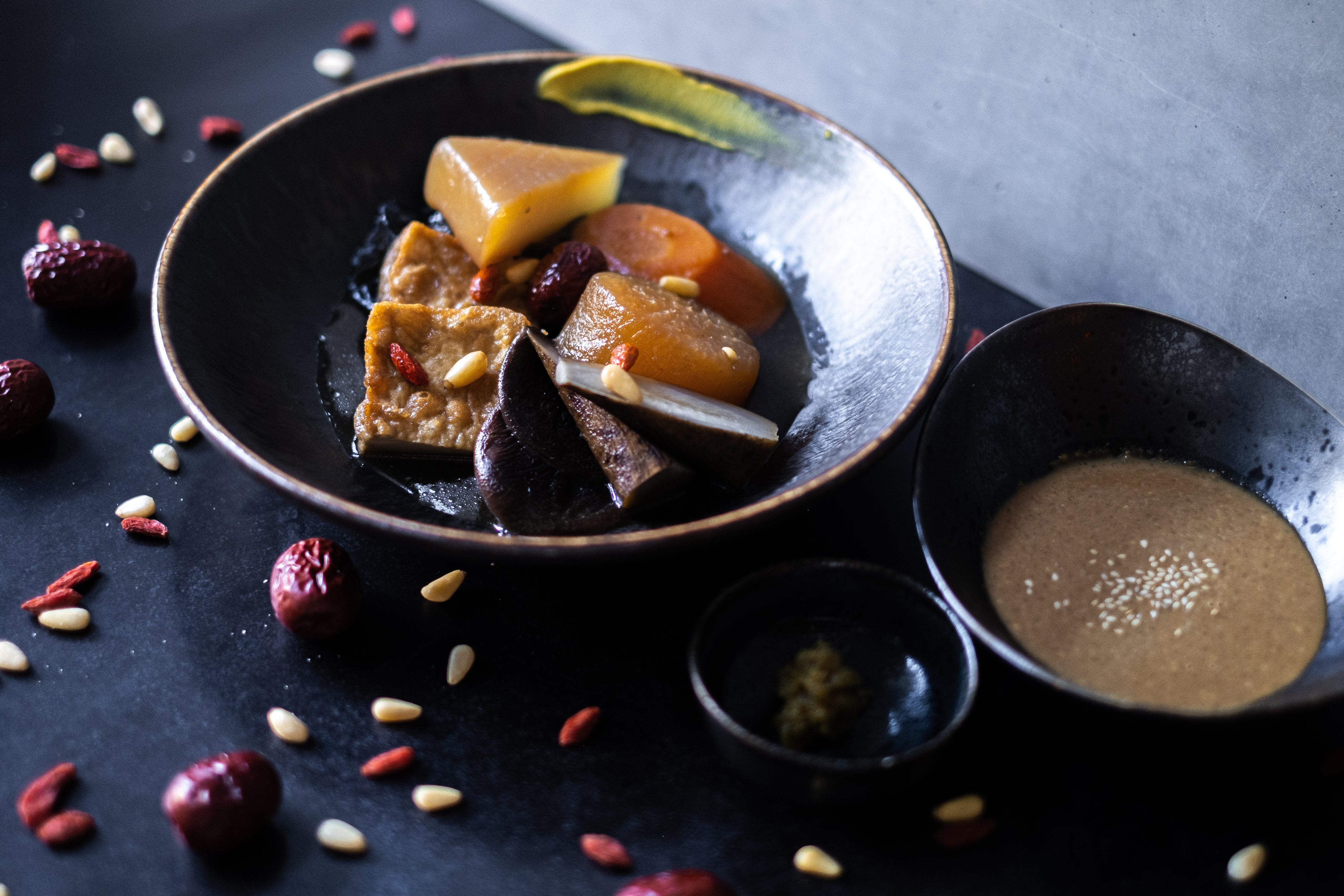 KIGIでは食のサステナビリティ推進および食の多様性を重視する観点から、ヴィーガンメニューを提供しています。「薬膳おでん」では、昆布や椎茸などをベースにした植物性の出汁を使用。ヴィーガン・ノンヴィーガンを問わずお楽しみいただけます。