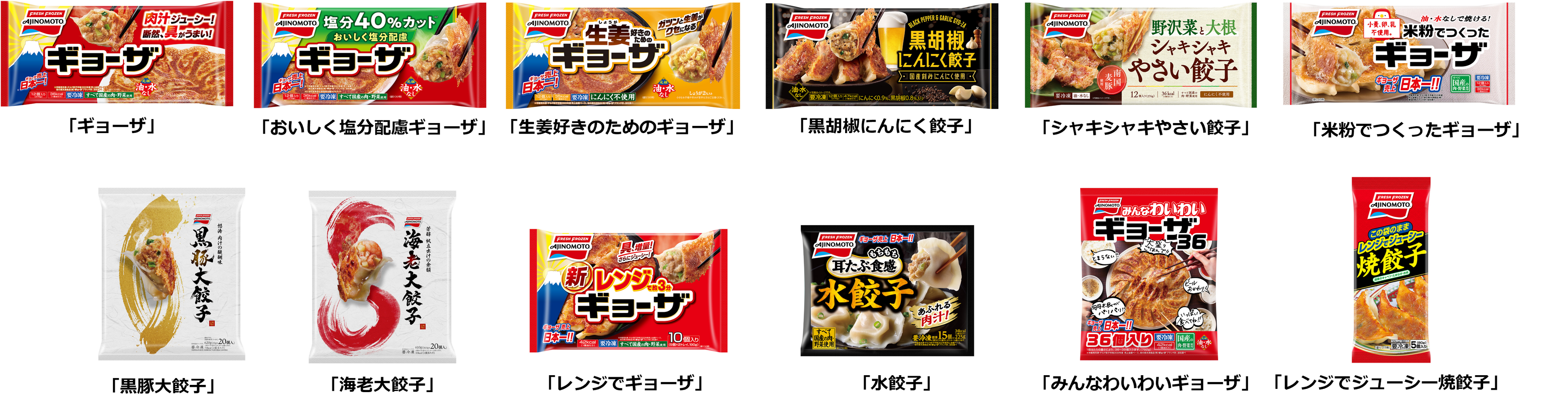 家庭用商品においては、“餃子が大好きなすべての人に最高の笑顔をお届けしたい“という想いから、お客様の多様なニーズにお応えして、幅広いラインナップを展開しています。