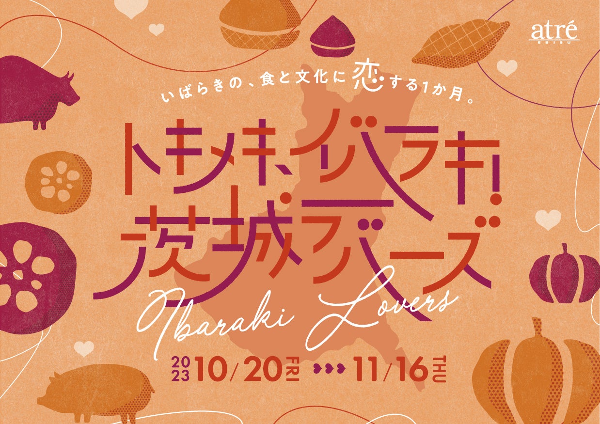 「Make!茨城ラバーズ」をコンセプトに、茨城の食材、文化の魅力を体感できる期間限定商品の販売やイベントを実施。昨年の「茨城 秋の味覚フェア ~いばらぎじゃないよいばらきだよ~」からパワーアップし、本イベントのために茨城の食材を使って開発した全18ショップ21商品をご用意。さらに、いばらきフラワーパークや茨城県水戸市にある「鈴木茂兵衛商店」によるワークショップも開催します。アトレ恵比寿の“茨城に思わず恋をしてしまうような提案”から、みなさまの「My favorite”茨城”」を見つけてみてください。