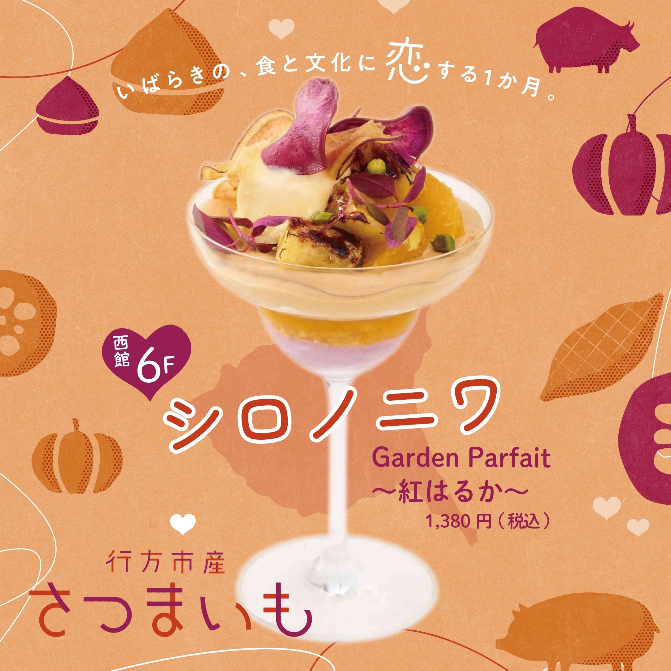 茨城県産紅はるかとふくむらさきに柑橘を合わせたこだわりの大人パフェです。