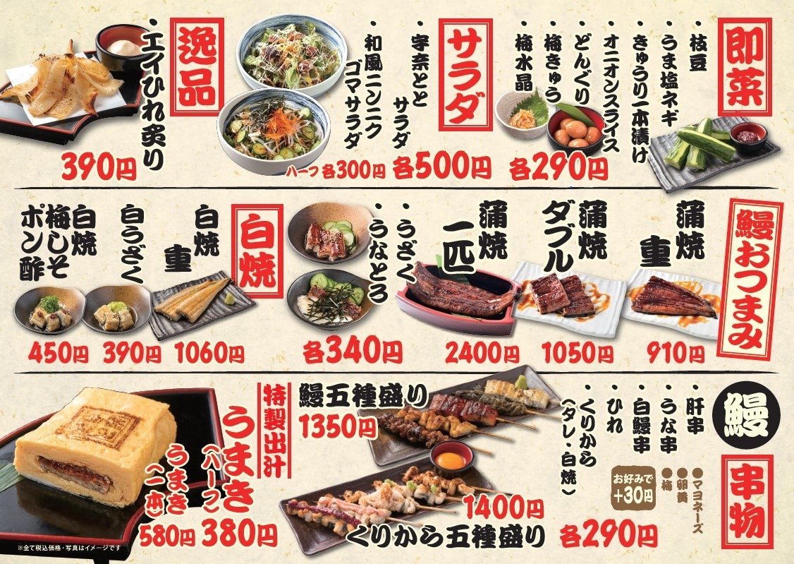 居酒屋メニューだけでなく、その他定番の鰻メニューももちろんご用意しております!