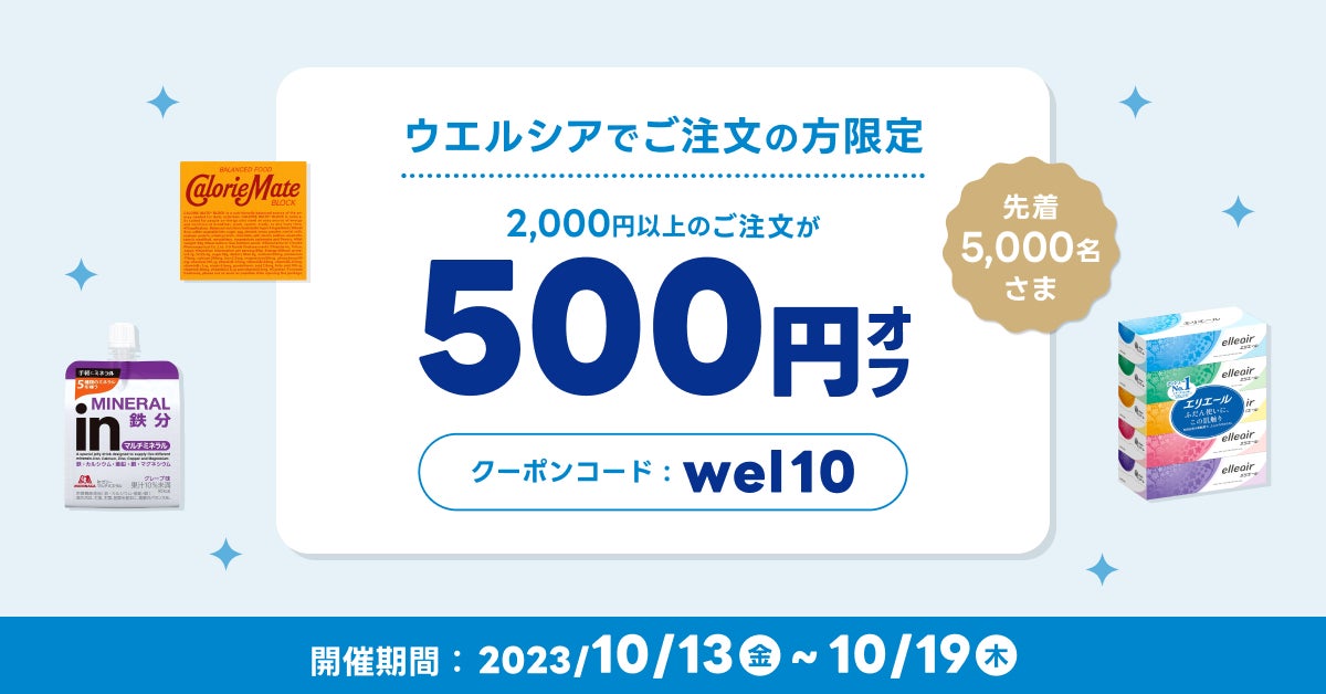 「ウエルシア」新規出店記念キャンペーン 2,000円以上500円オフクーポン