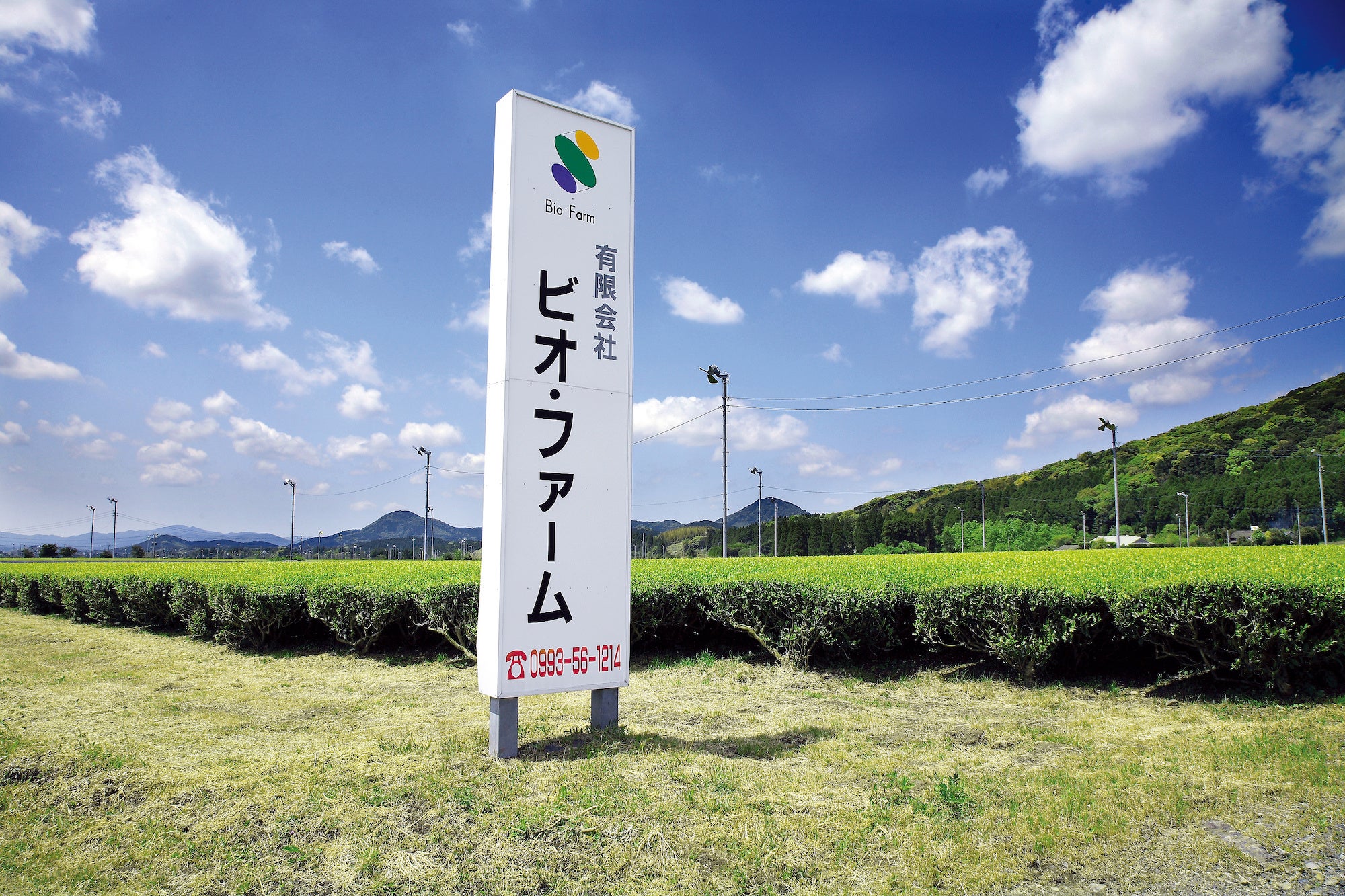 自社農園 ビオ・ファームは、1998年(平成10年)に鹿児島県南九州市川辺町で設立されました。当時からヨーロッパを中心とした海外取引にも歩みを進めるなど、下堂園は鹿児島茶の未来を切り拓くために様々な挑戦をしており、ビオ・ファーム設立もその一つでした。当時、茶商が茶園を持つことをタブー視する風潮があった中で、「世界で通用するお茶をつくりたい」という強い想いを胸に、難易度の高い有機農園管理への取り組みを地道に続けてきた結果、今ではアメリカやヨーロッパなど世界各国に輸出し、国内外から高い評価をいただくまでになったのです。約7ヘクタールの茶畑では、そのすべての茶が化学的に合成された農薬・肥料を使用せずに生産されています。また、お茶だけでなく、しょうが、ハーブ、ブルーベリーなど様々な農作物を栽培しています。
