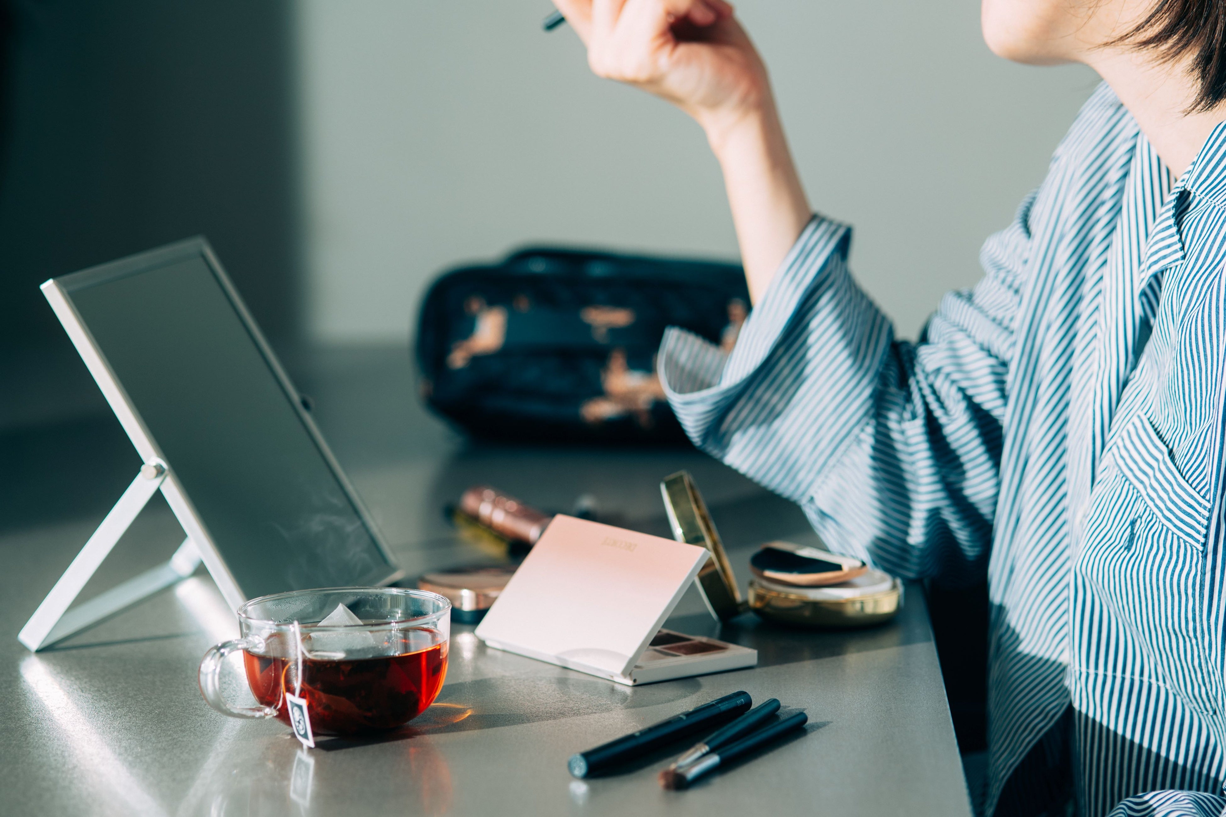 例えば、寝起きの朝には、お化粧や身支度のモーニングルーティーン“with 有機薩摩紅茶”