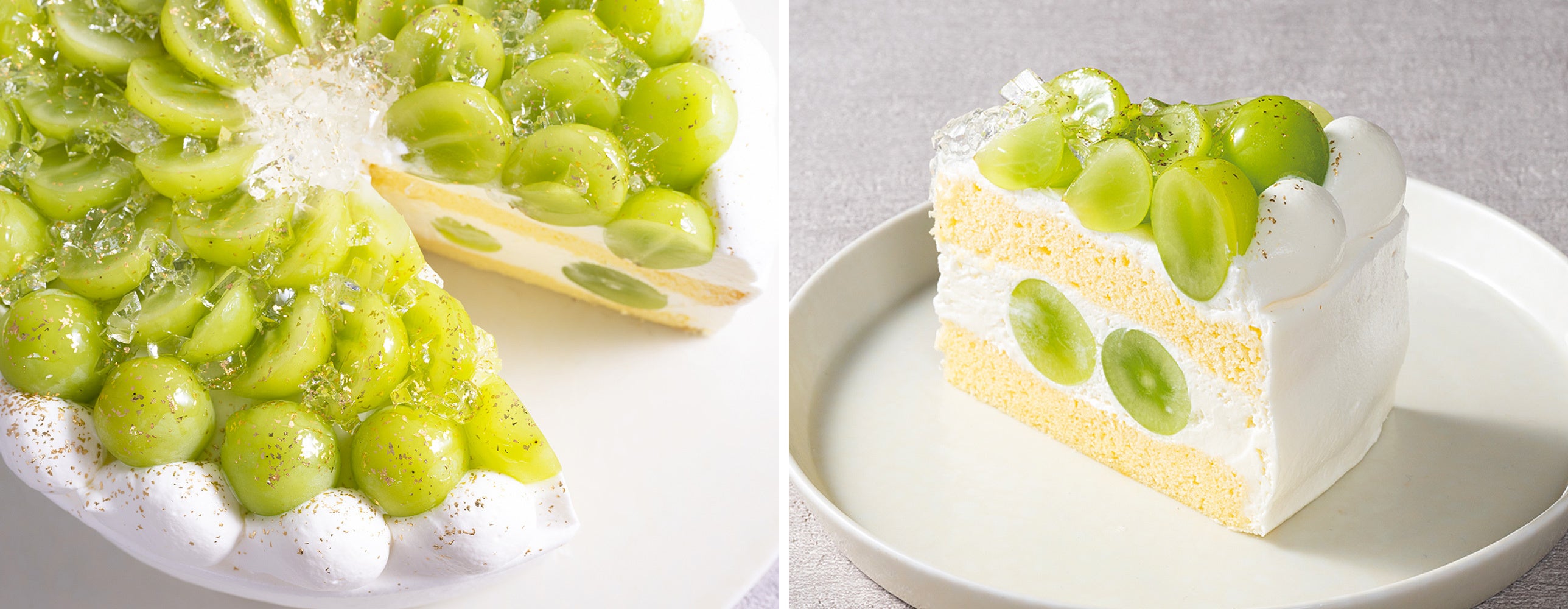 大きく実ったジューシーなシャインマスカット、口どけのよい上品な生クリーム、ふんわりとしたスポンジが奏でる旬の味わいです。