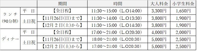 ※4~6歳は1,000円、3歳以下無料 ※12月23日(土)~12月25日(月)のディナーは、はクリスマスブッフェをご提供