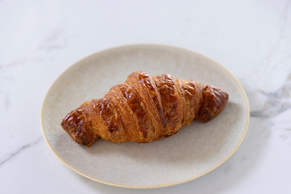 「RISTRETTO&CROISSANT LABORATORIO」は、焼きたてのクロワッサンと本格的なカフェラテの豊かな香りを愉しめる空間です。当店のシグネチャークロワッサン(プレーン)は、北海道産キタノカオリの全粒粉を含む3種の小麦、厳選したバターを使用し、豊かな香りを強く感じることができます。店頭で焼き上げているため、いつでも焼きたてのサクサク食感をお召し上がりいただけます。