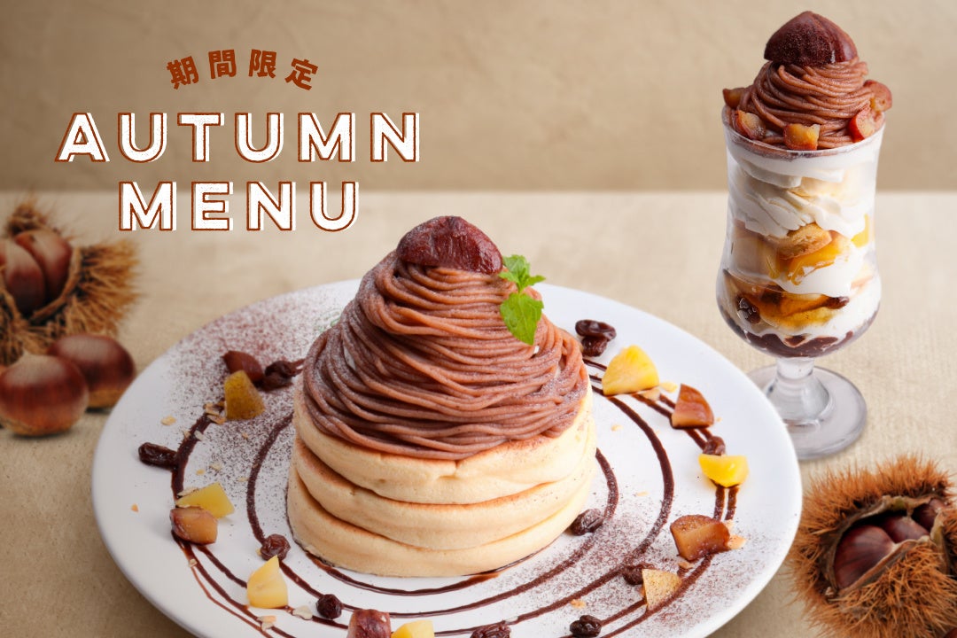 『2種の栗とラムレーズンのモンブランパンケーキ』を10月16日(月)より期間限定で販売いたします。