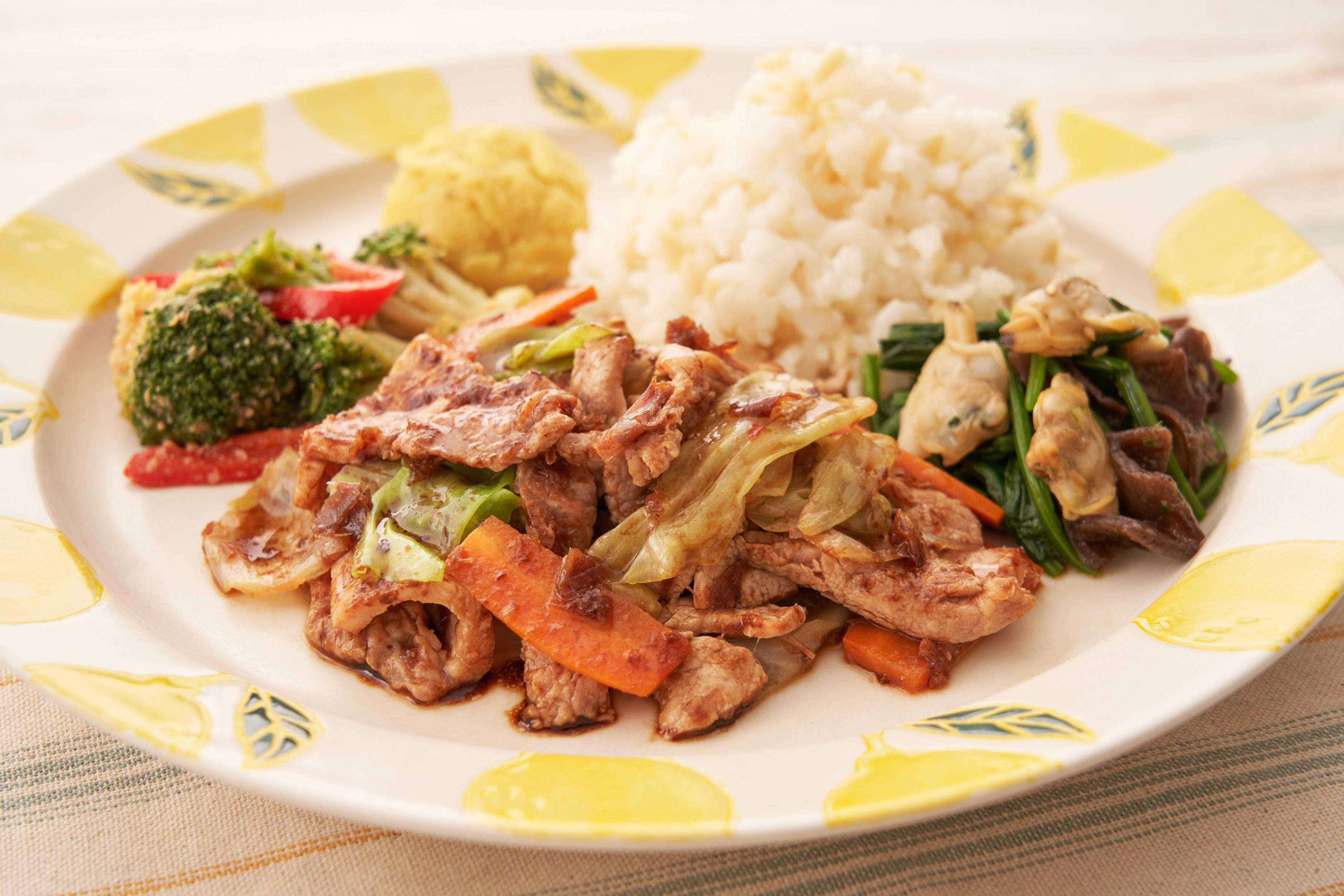 甜面醤を使用し、コクのある味わいの回鍋肉ですが、食塩相当量はお弁当1食で1.4gとヘルシーな仕上がりになっています。脂質や塩分が気になる中華も、ママの休食のお弁当なら、美味しく食べて、身体にも嬉しい食事になっています。