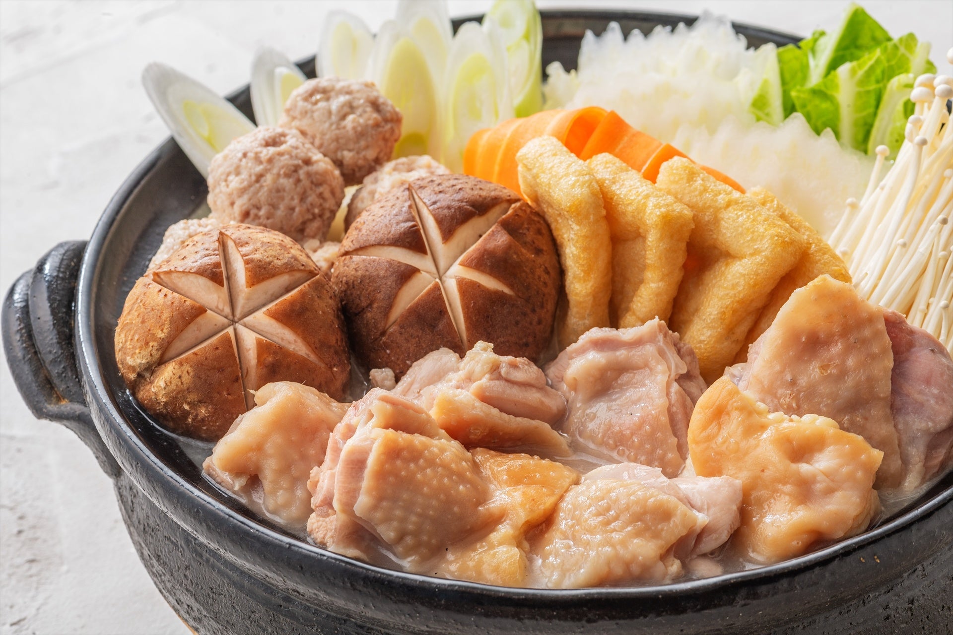 福岡県産銘柄鶏「はかた一番どり」のもも肉ぶつ切りと、鶏ガラを6時間以上炊き込んだ無添加の白濁ガラスープ、自家製のナンコツ入り鶏つくねが入った、ご自宅で本格的な水炊きを楽しめるセットです。
