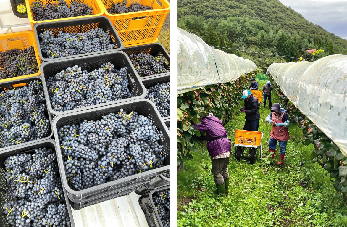 ワインのスタイルは「大迫町らしさを健全なぶどうだけで表現したクリアなワイン」。冷涼な酸味と果実味があり、重くないがエキス感があって飲み心地がいい。そんな大迫町らしさをワインで表現しています。栽培で最も重視しているのは、ヴェレゾン期(色づき)までに房の健全性を保つこと。ひと房ひと房、病果を丁寧に取り除くことで、収穫時期に選果をしなくても健全なぶどうだけを収穫することができます。結果として、健全な発酵を促し、クリアな味わいのワインに仕上がります。