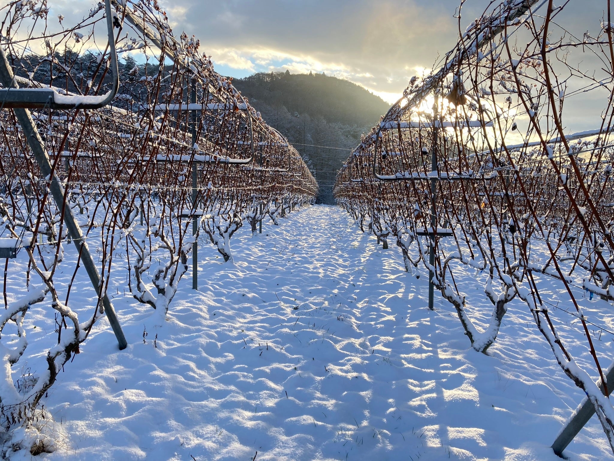 2022年を一言で表現するなら「落ち着いたヴィンテージ」。2022年は開花前(4月)の高温と開花期(6月)の低温による顕著な気温変動による花振るいで結実不良が多発しました。その後8月の多雨と日照量不足、9月の残暑と夜間の高温による少日較差で着色進行、糖度向上が緩慢で気象的には試練の年でした。醸造面は温度管理を徹底しオーソドックスな醸造を行い品種本来の果実味の表現に心がけました。 -