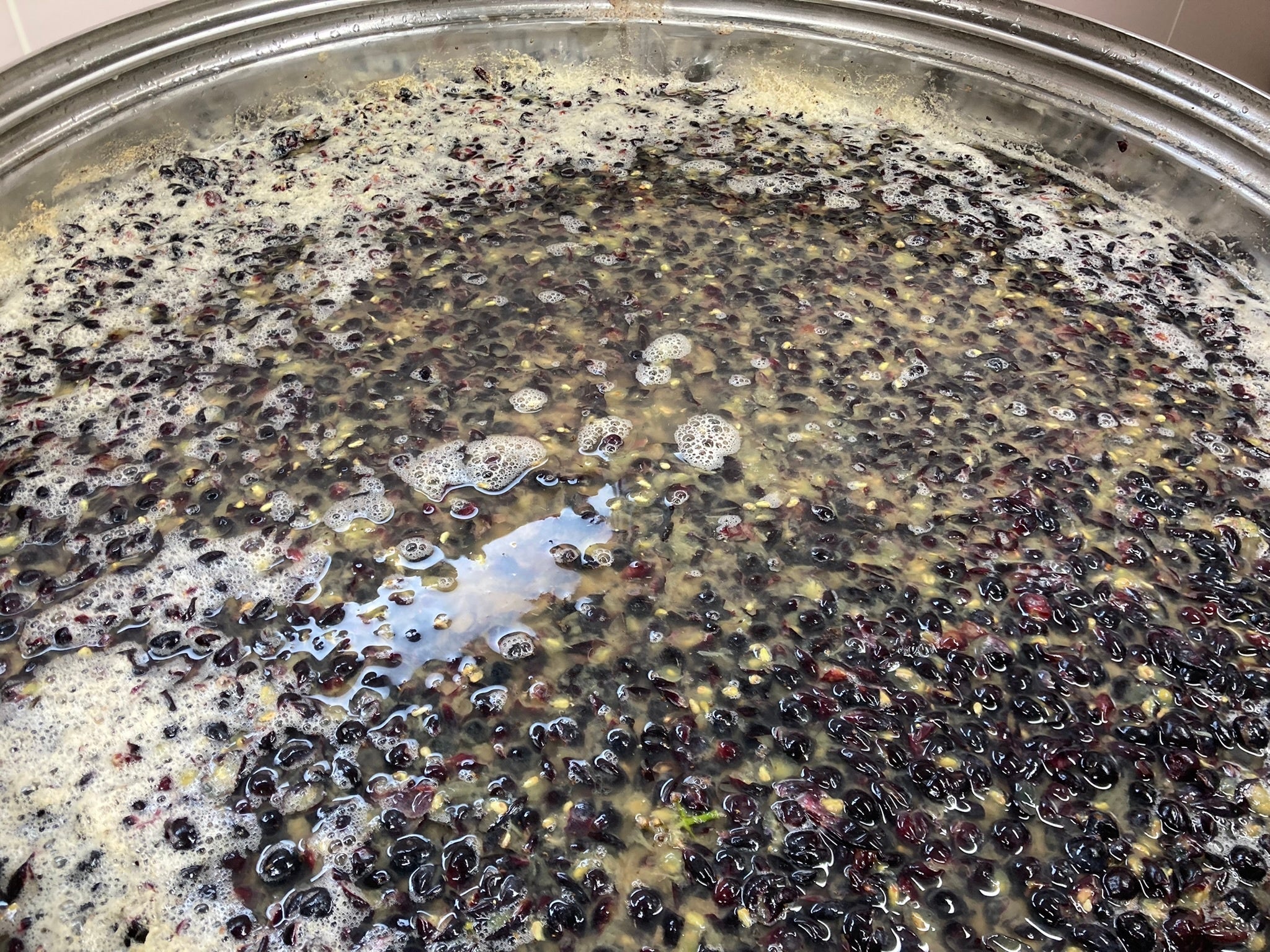 2022年は当園の2つ目のヴィンテージとなりますが、昨年と比較して収穫前の房をなるべく健全に保つ作業や糖度酸度の推移を見ながらの収穫日の判断が難しい年でした。早生品種の収穫直前の9月上旬は降雨日が少なかったのは良かったのですが、最高気温、最低気温ともに高く日較差が少ない日が続いたため、糖度を見ながら収穫日を待っていましたが、降雨予想により結局ツヴァイゲルトレーベは平年より低い糖度で収穫日を迎えました。晩生品種の収穫時期は9月下旬から10月中旬となりますが、この時期は秋雨前線も南下し晴天の日が続きます。8月9月の天候不順の挽回を期待し例年より遅めの10月中旬以降にソービニヨンブラン、メルロー、リースリングリオンを収穫しました。